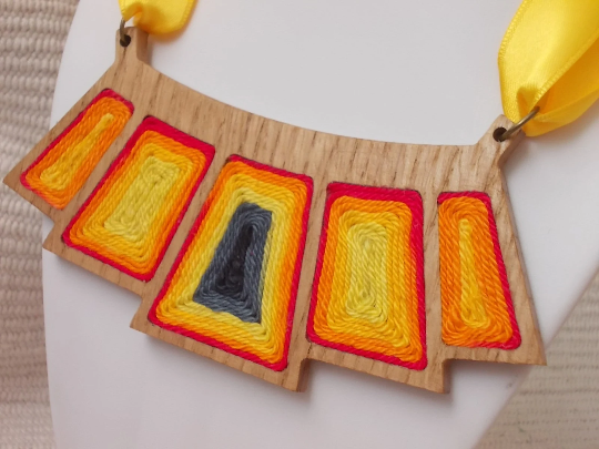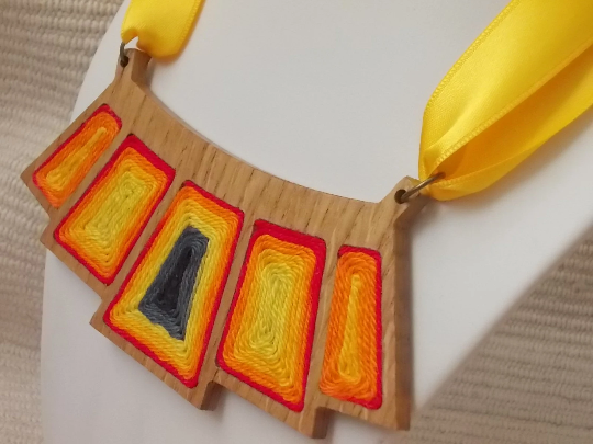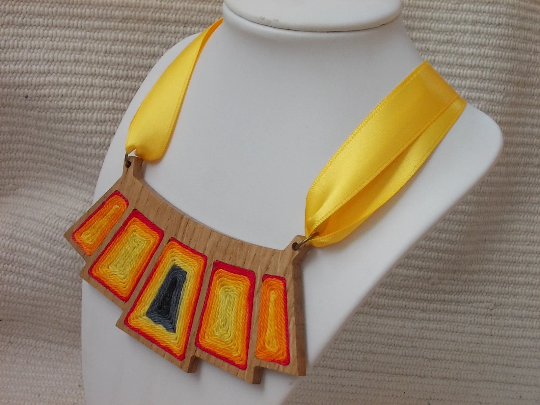 ELKELT INKA fa és fonalnyaklánc, bohém nyaklánc, különleges ajándék, textilékszer