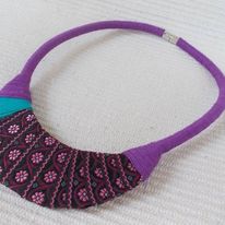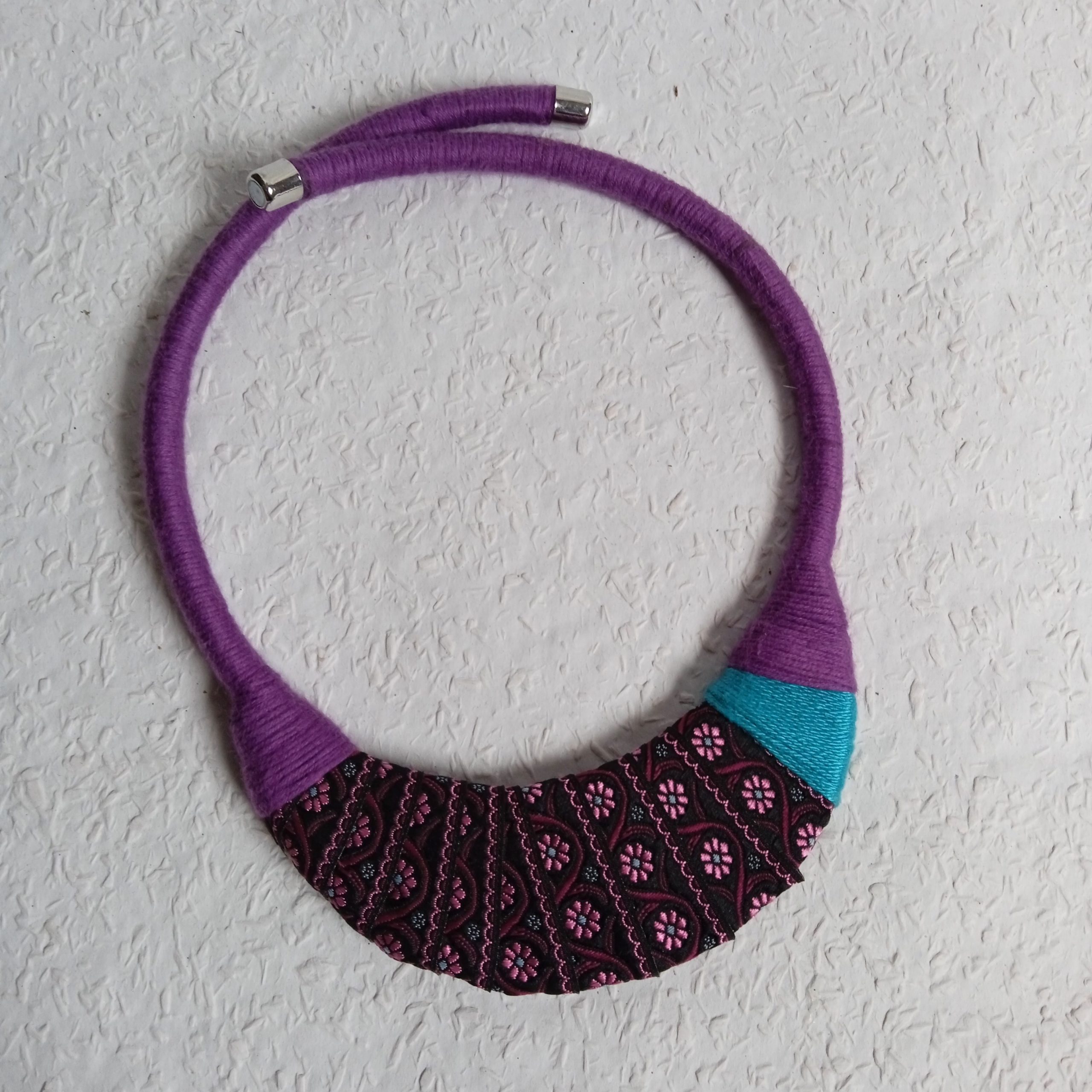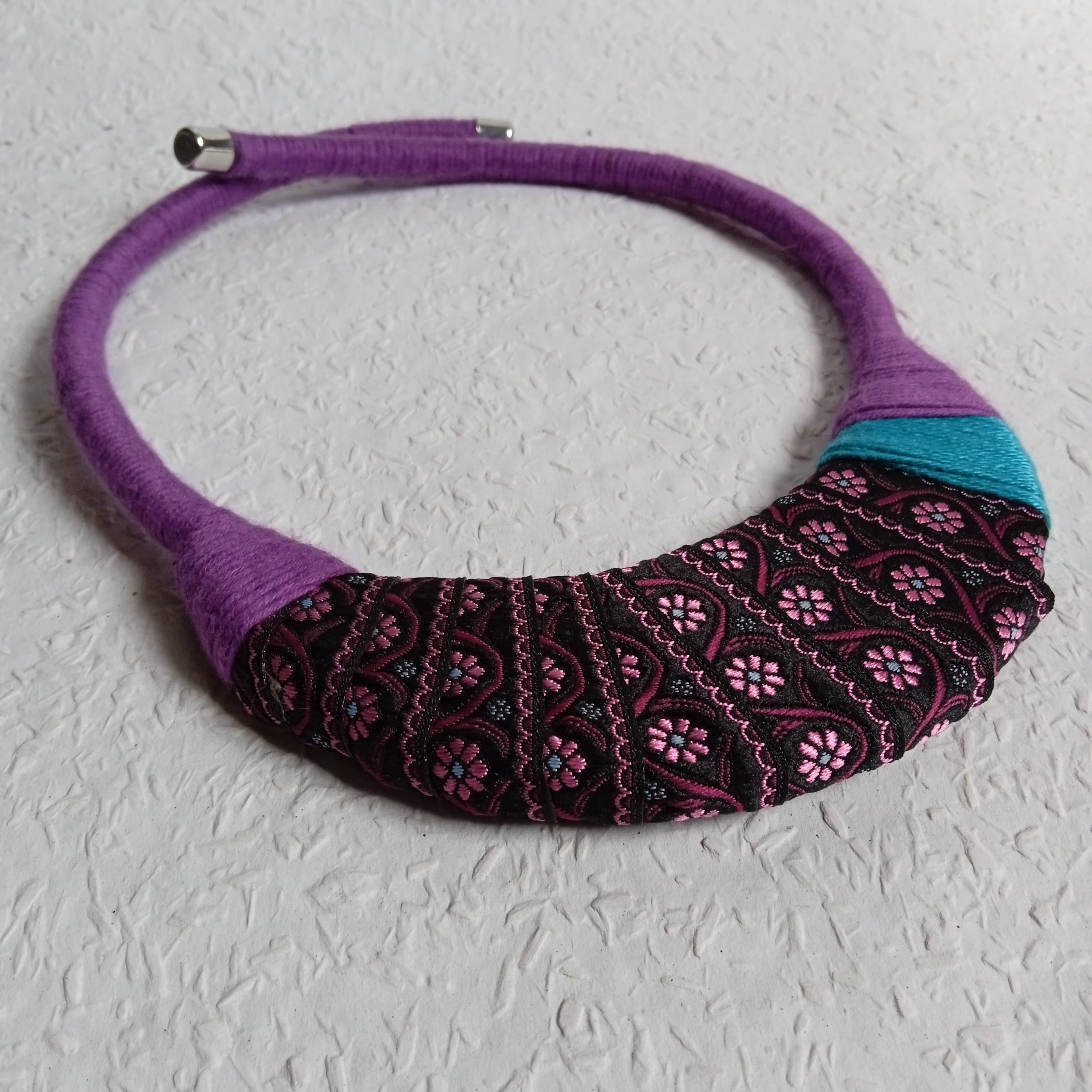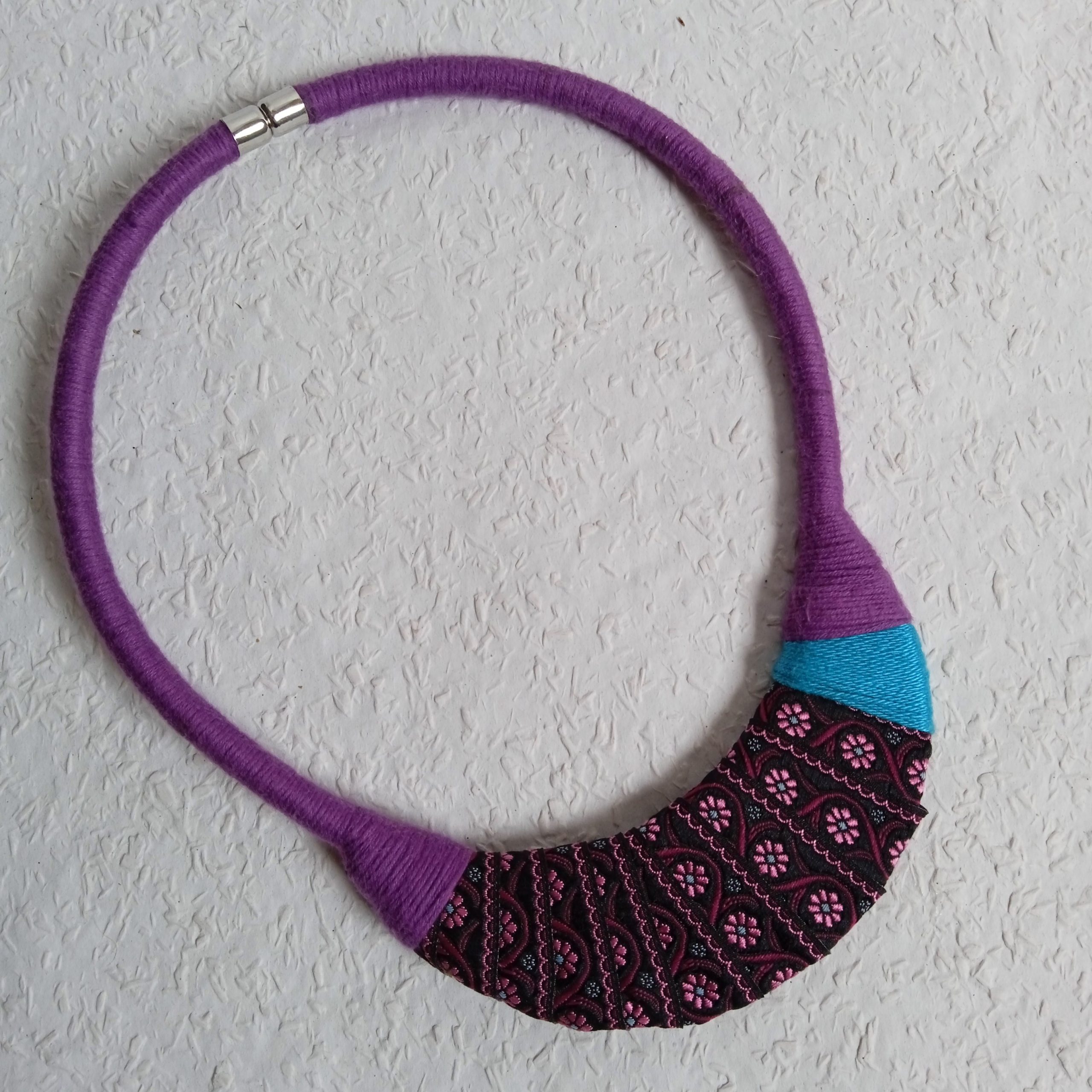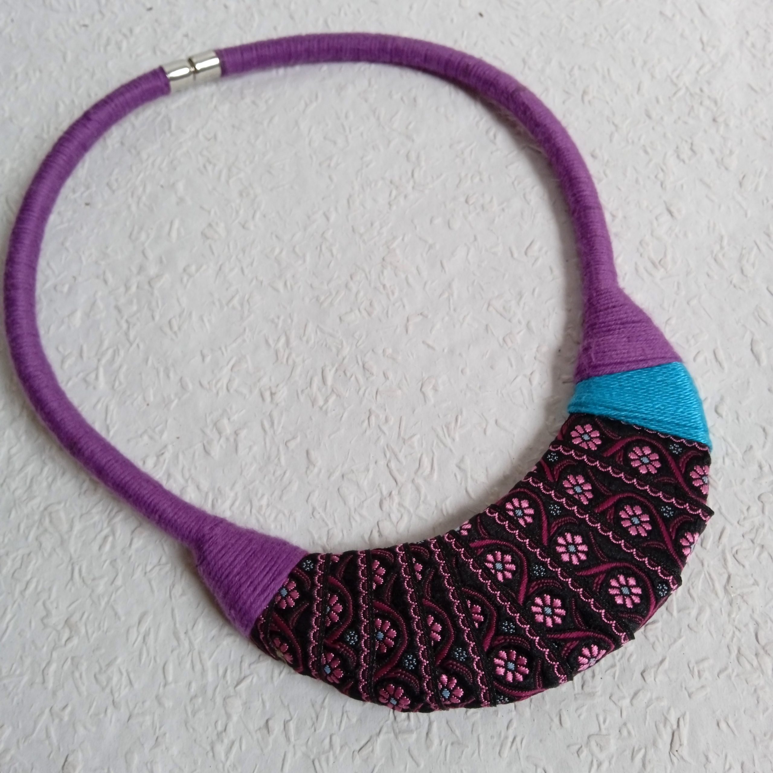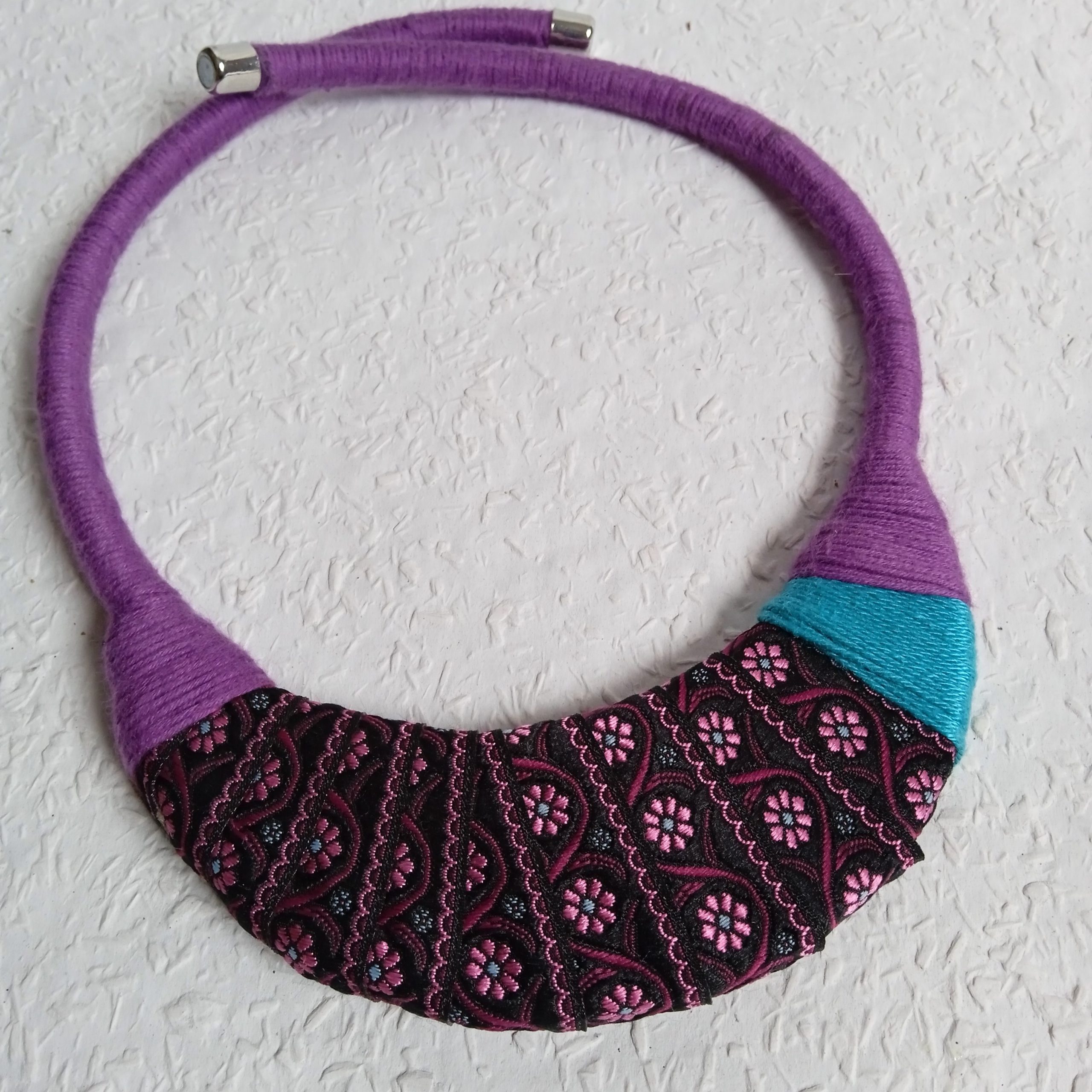 Többszínű lila virágos félhold nyaklánc, textil nyaklánc