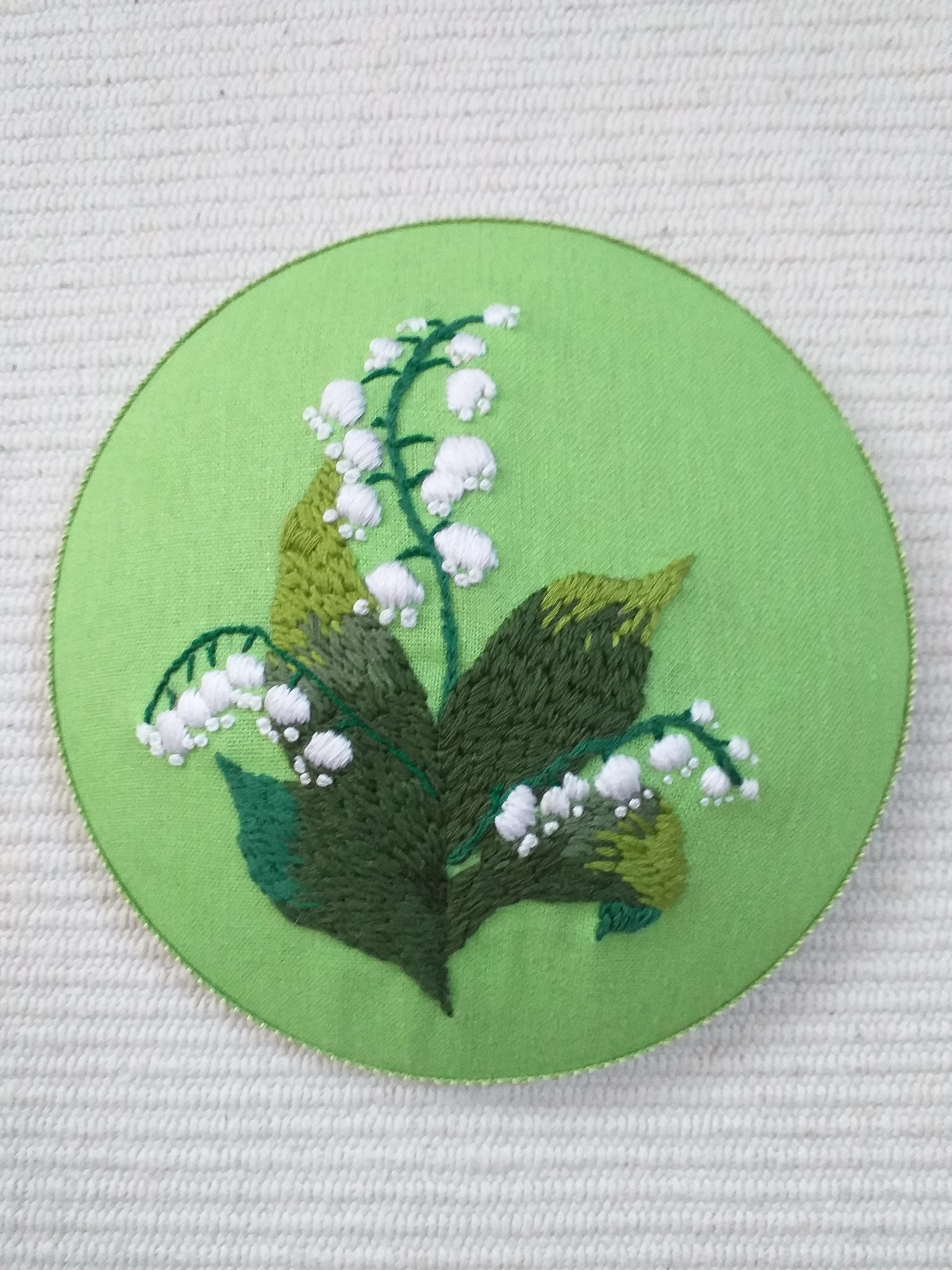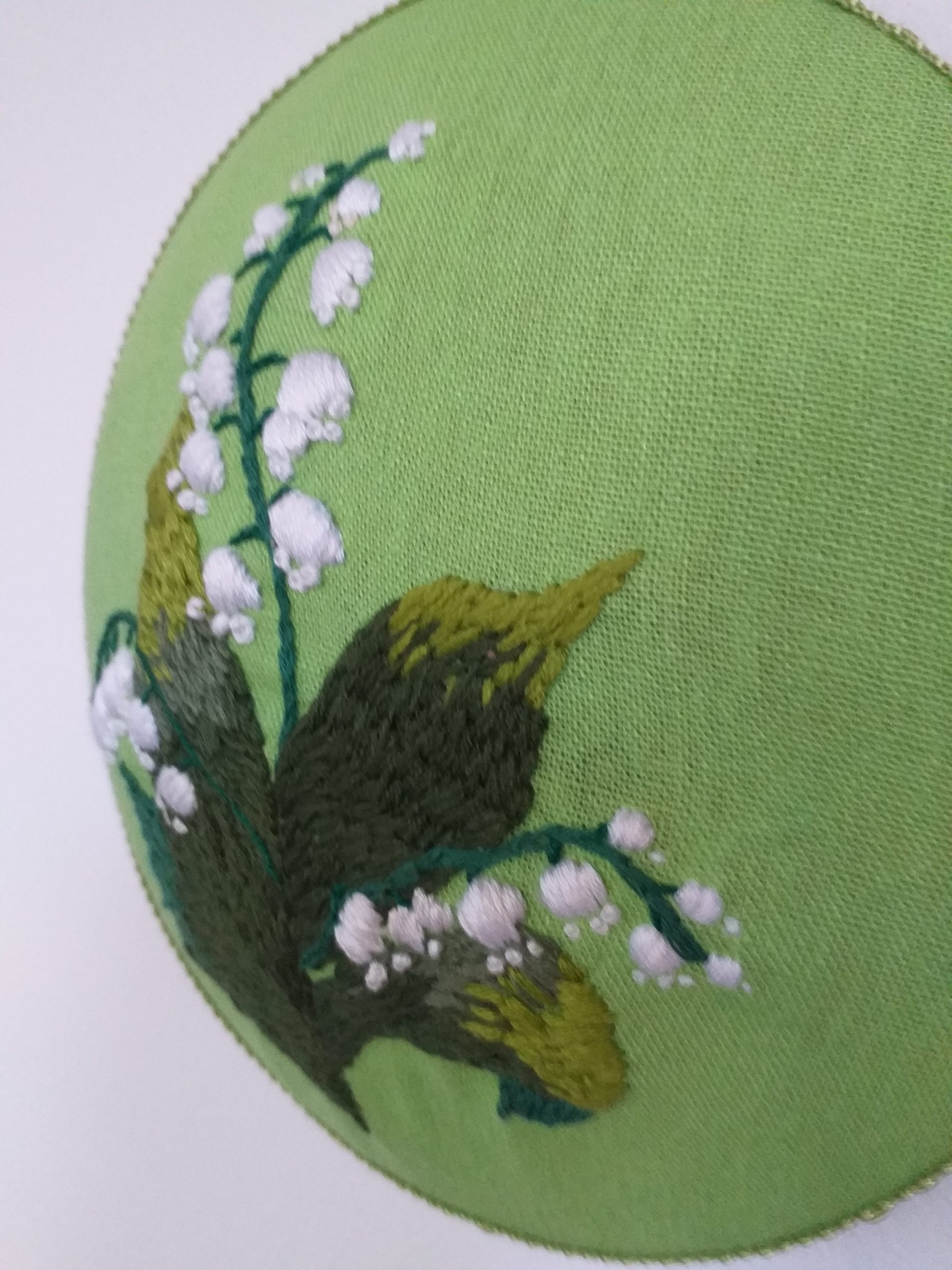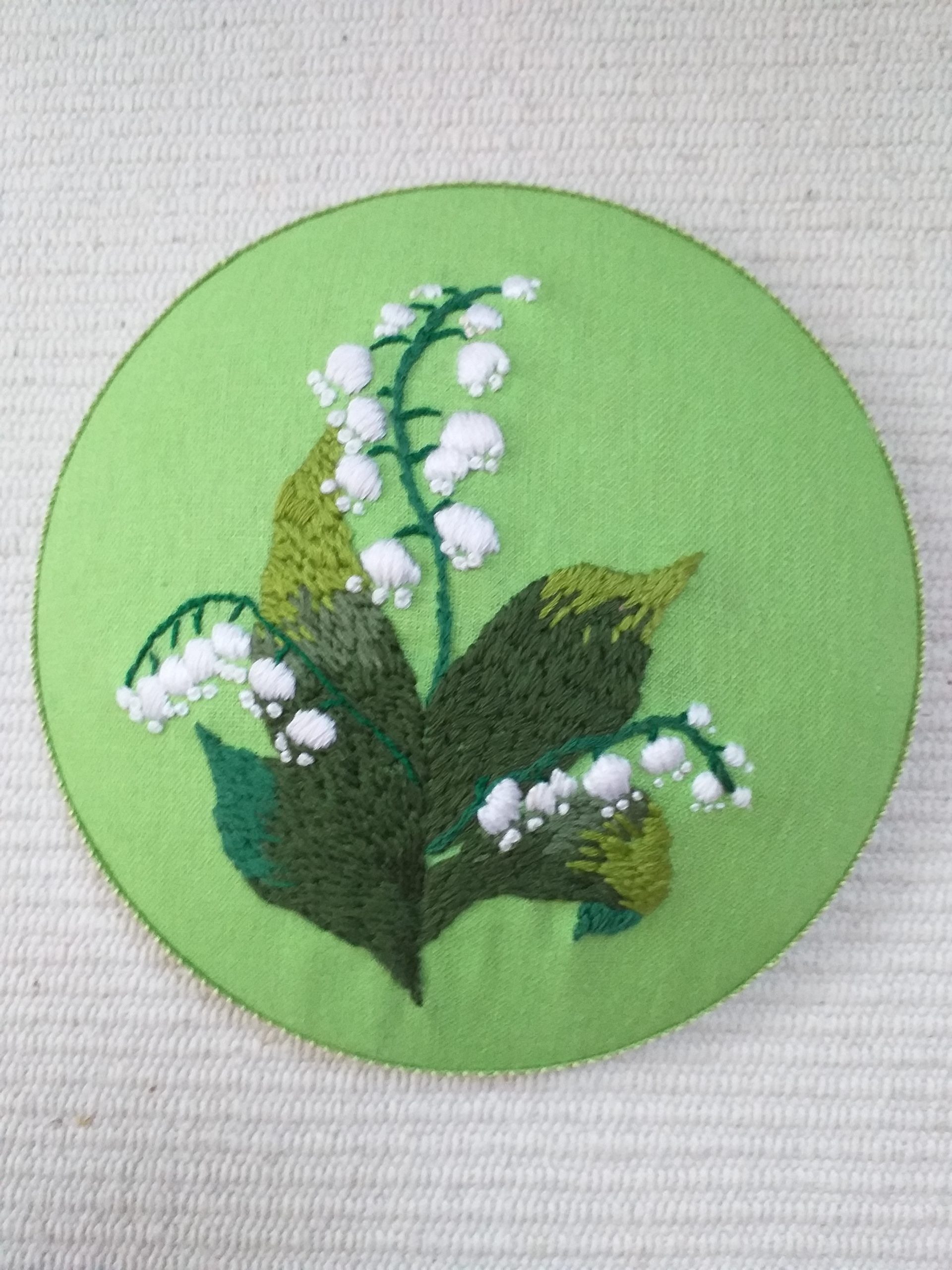 Hímzett hóvirág zöld lenvászonra