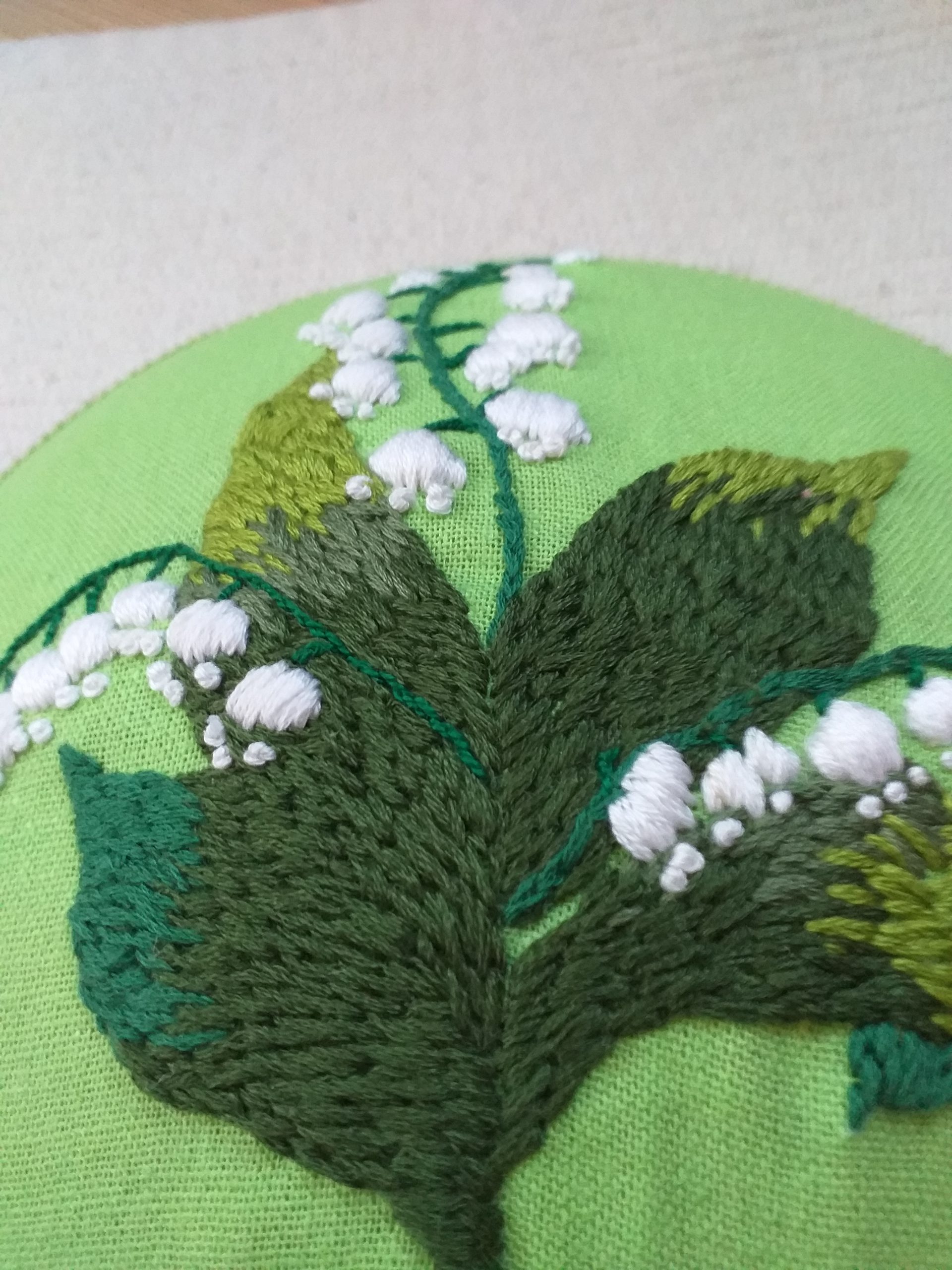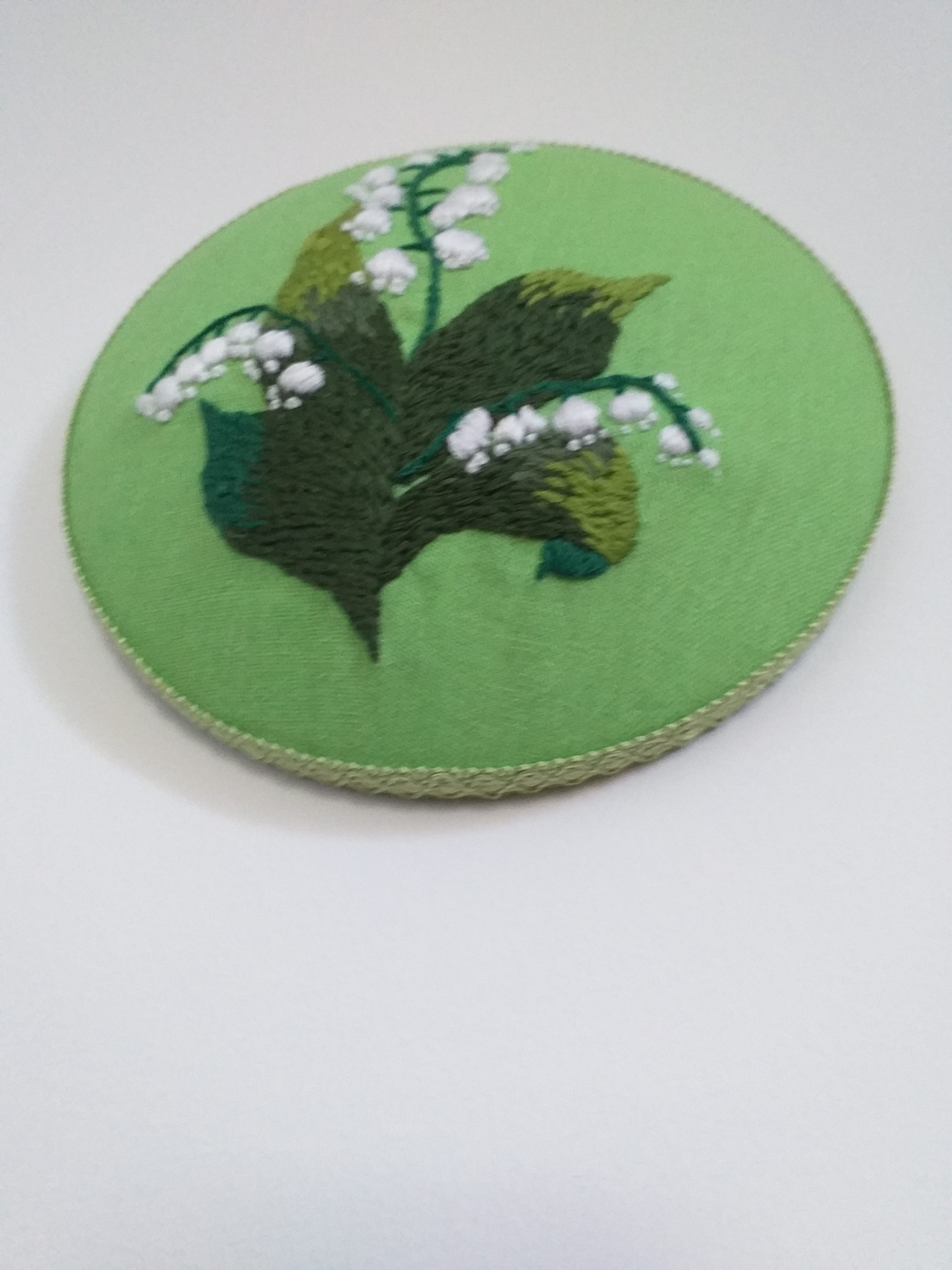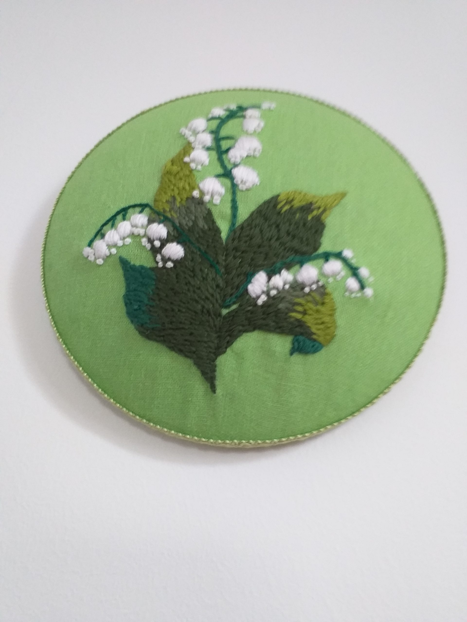 Hímzett hóvirág zöld lenvászonra