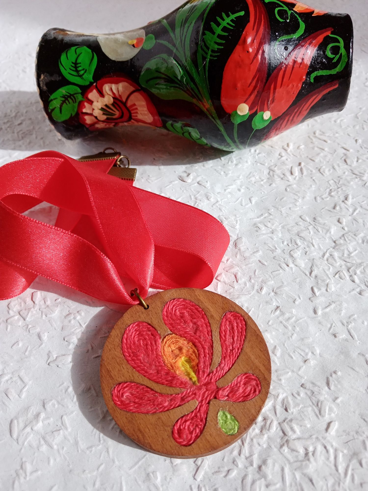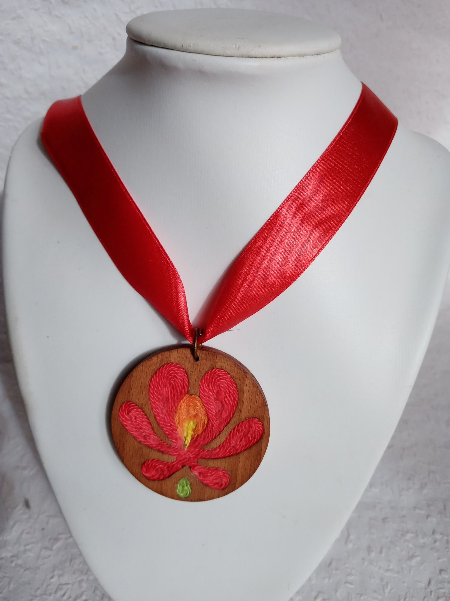 A magyar hagyományok tiszteletére készült ékszer. Faalapban fonalak matyó virág mintázatban. A faalapon belül a szirmok fonallal készültek. Egyedi darab. Ha szereted a magyar hagyományt, ezen ékszer viselésével is Tedd vidámabbá a napjaidat és tűnj ki a tömegből ezzel az egyedi matyós ékszerrel! Több darabot is el tudok készíteni rendelésre.