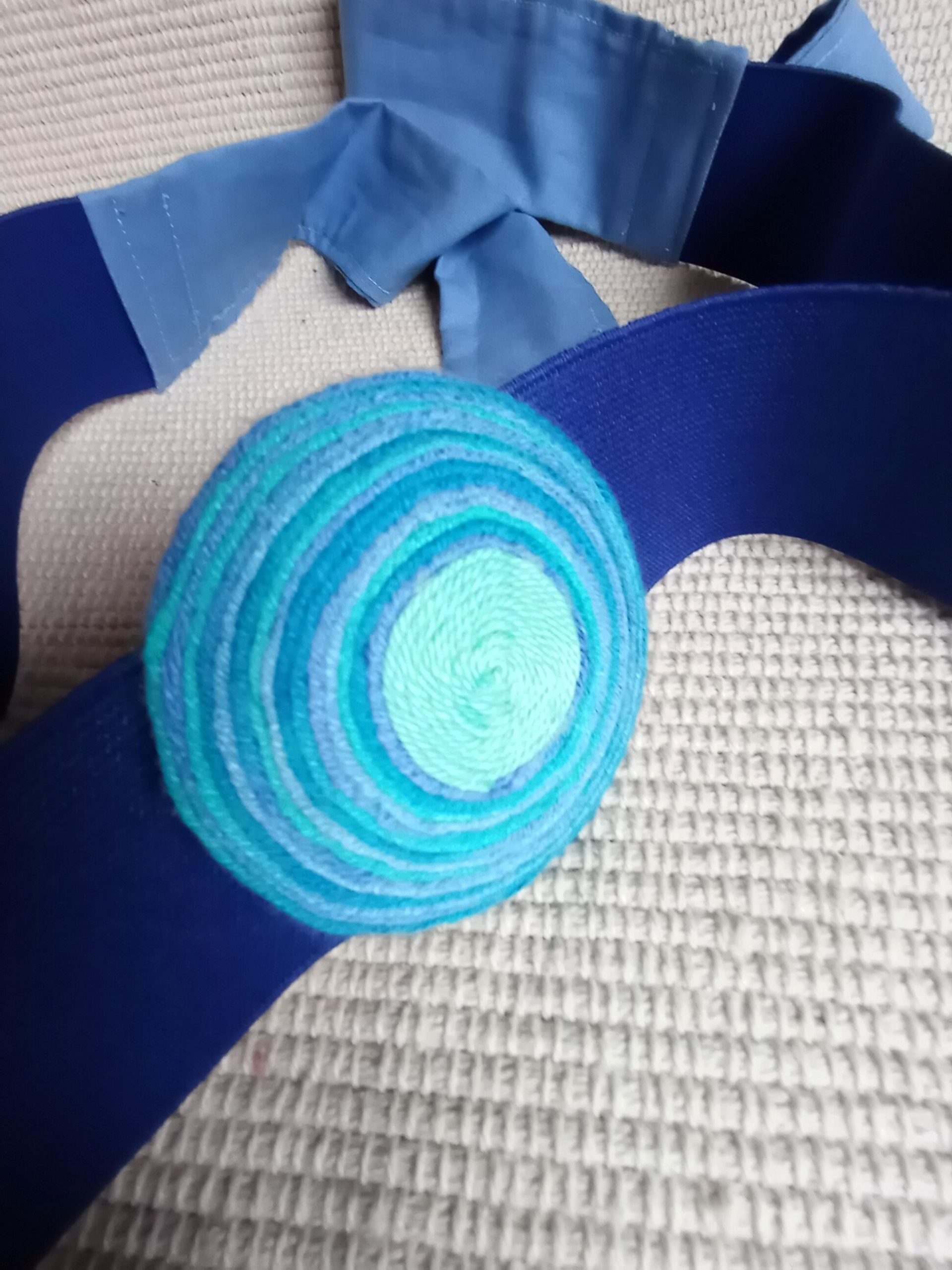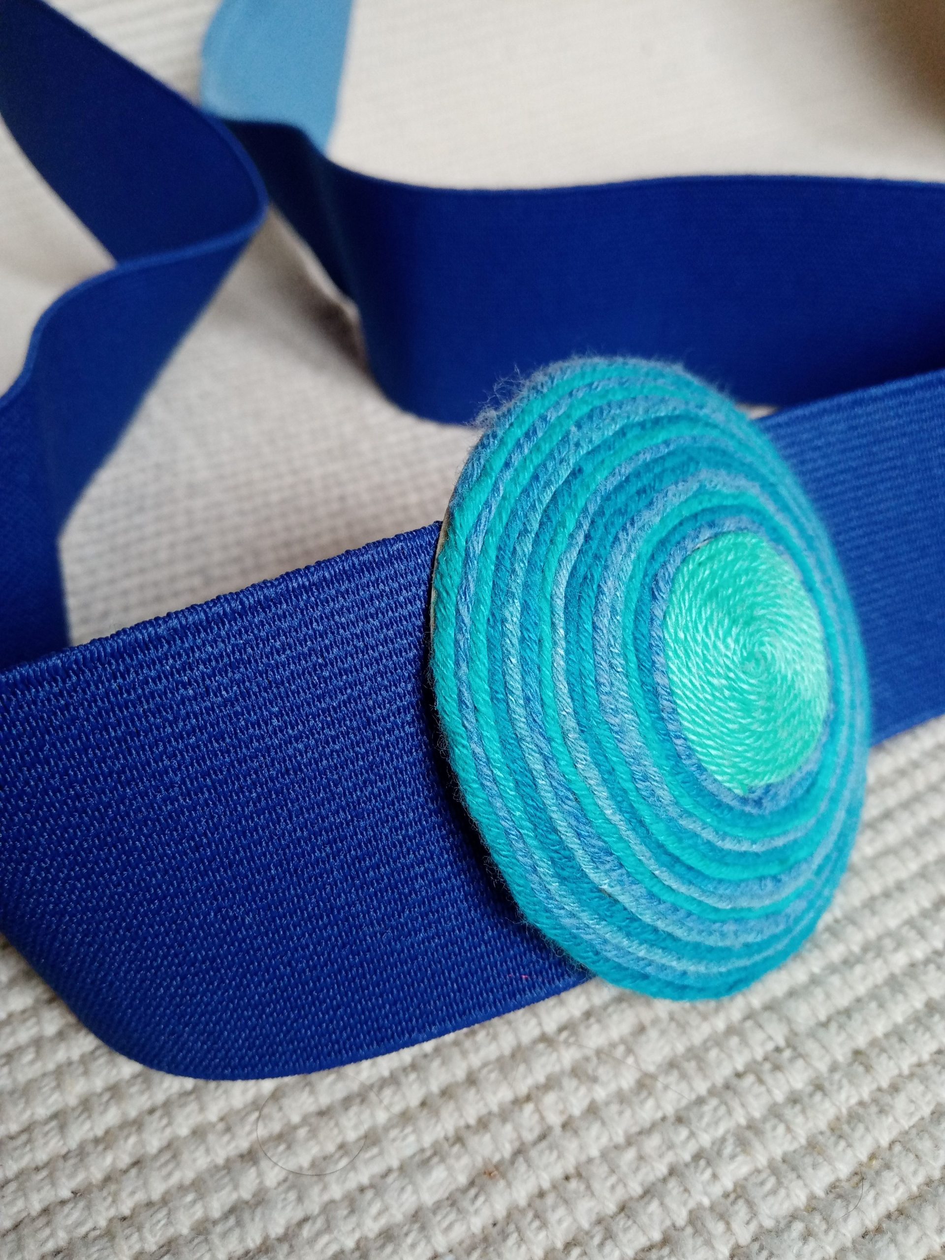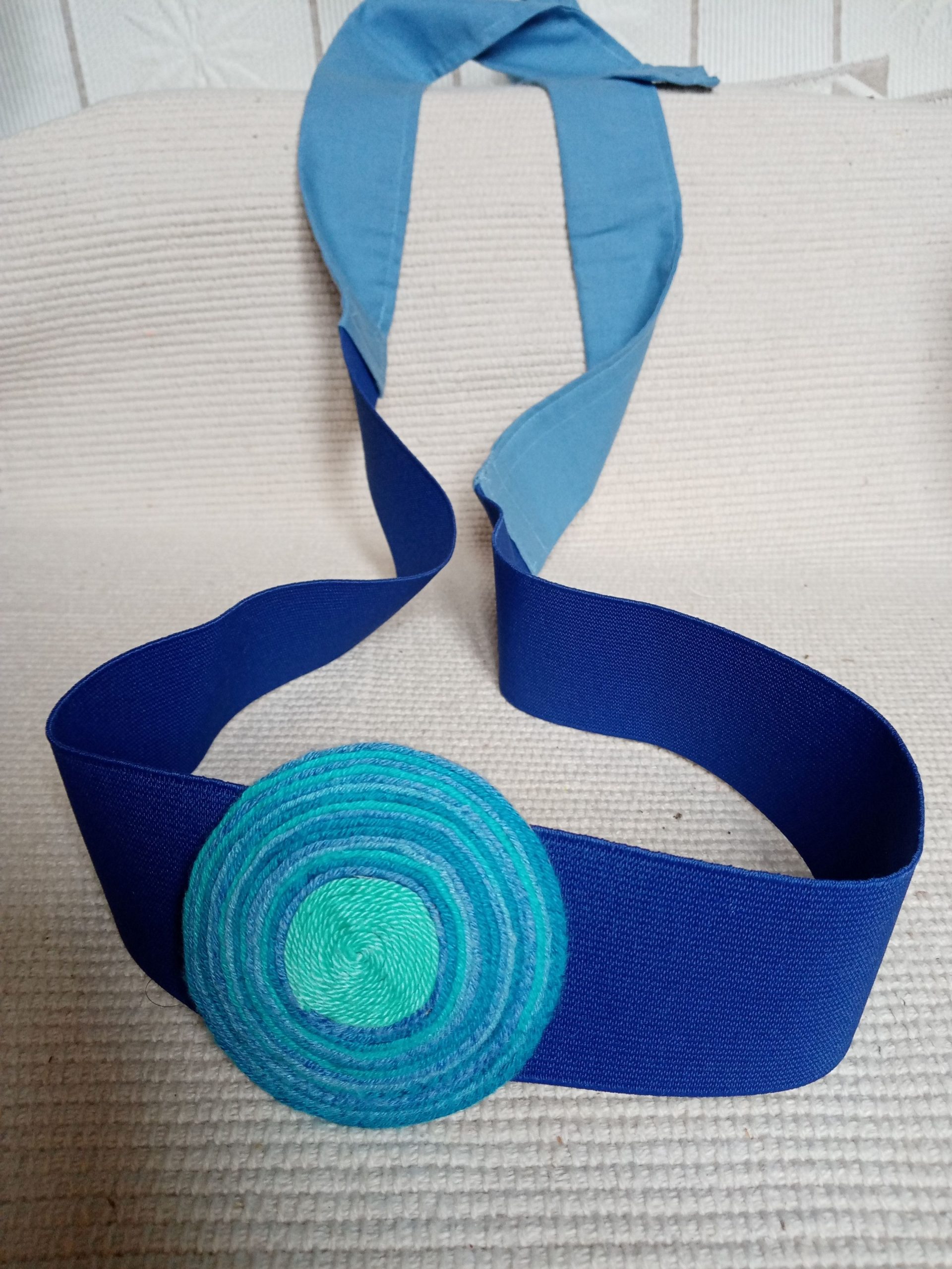 Középen 7.5 cm falencsére felhúzott hímzett rész található, melyet egy 5 cm minőségi gumiból és pamutvászonból összevarrt anyaggal bárhol megkötheted a derekadon.