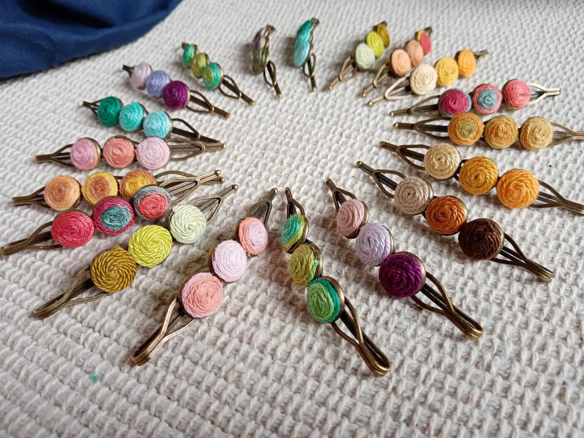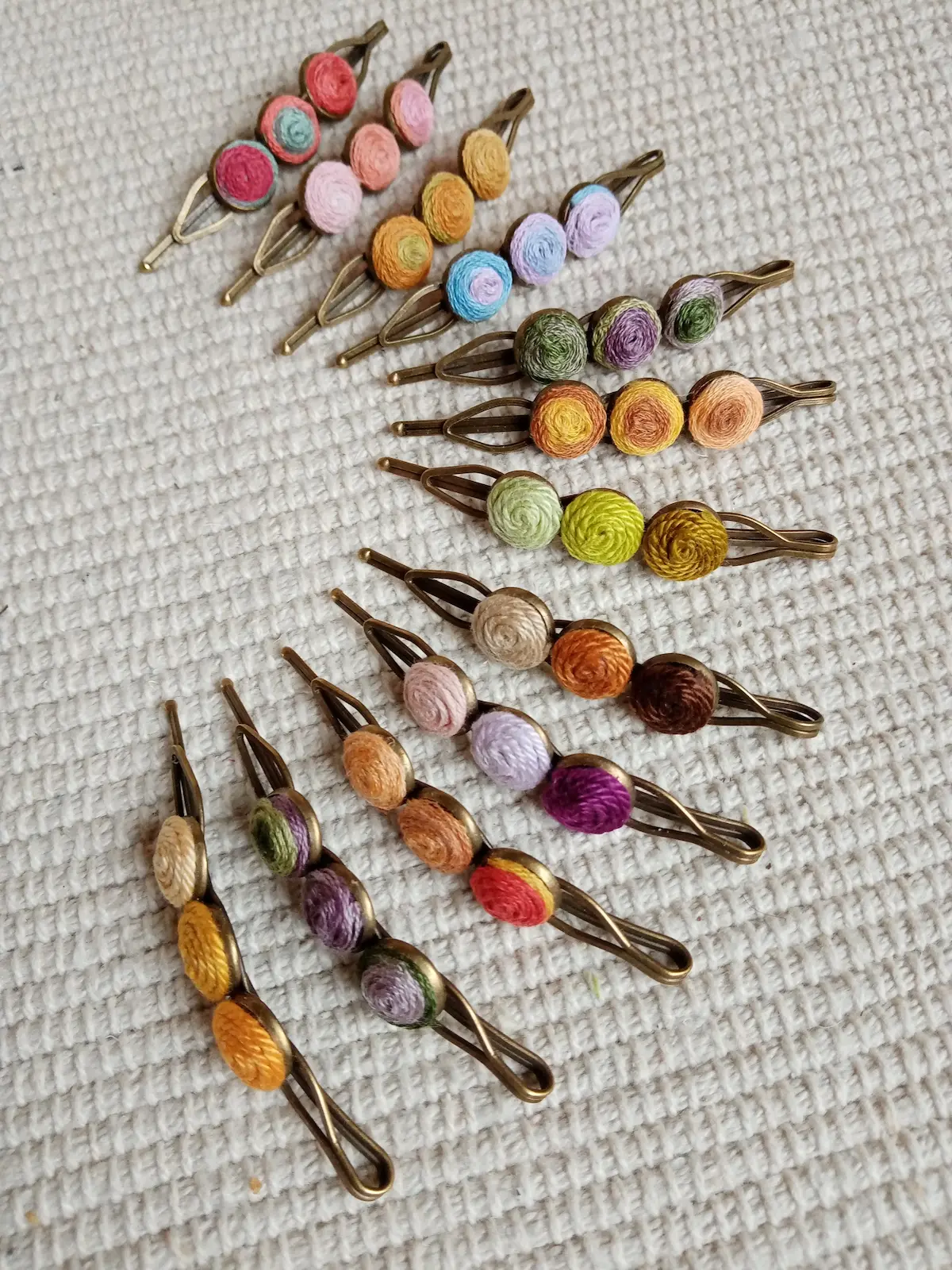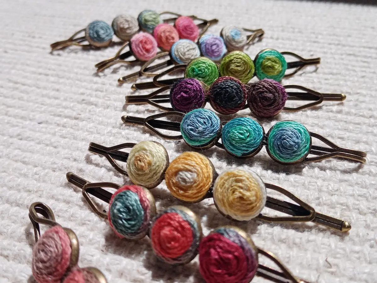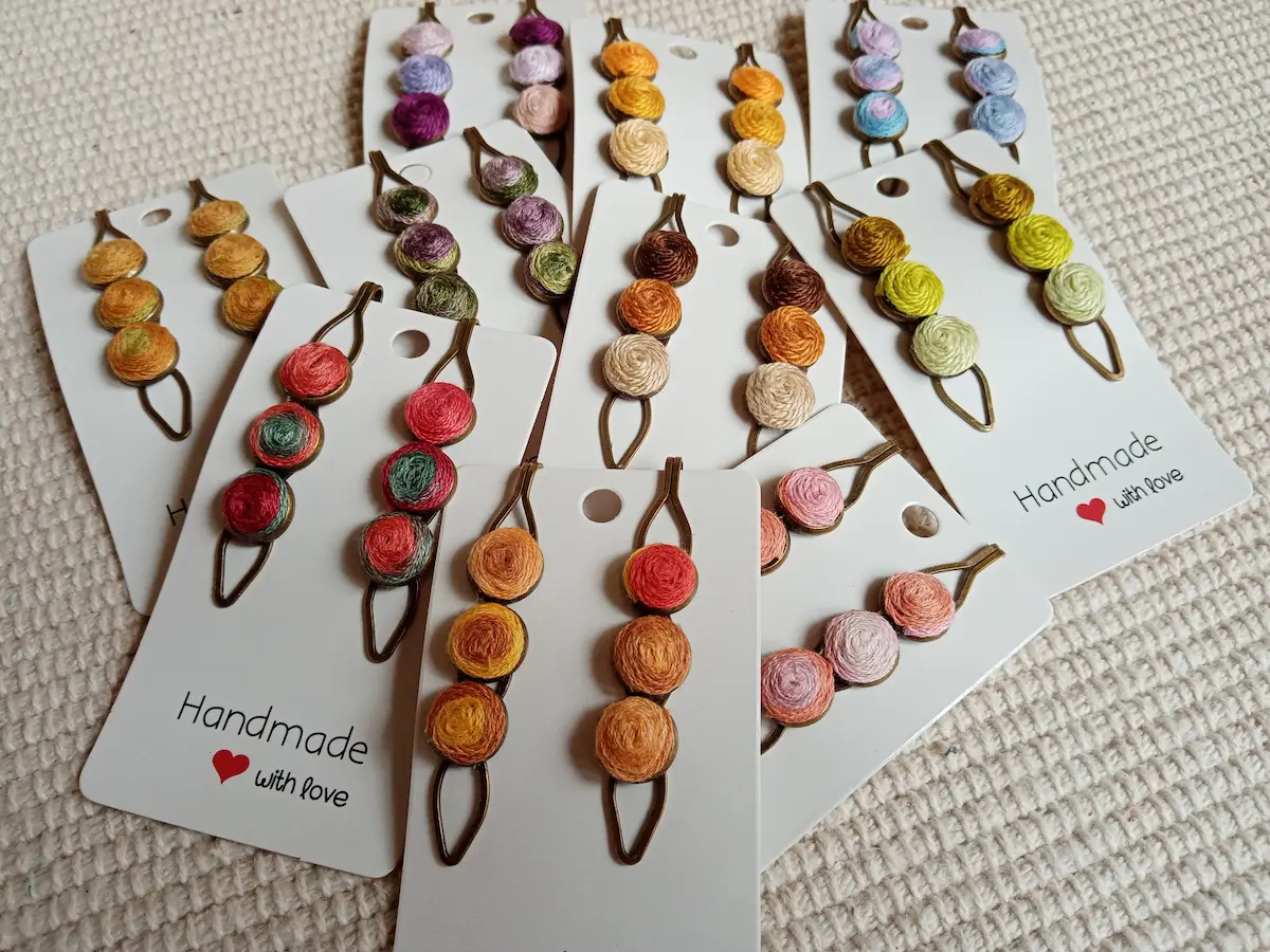 Praktikus több színárnyalatú textilbogyó hajcsat, mely kiemeli hajunk szépségét. Nemcsak ünnepi viseletre ajánlom,hanem a hétköznapokra is. Csodásan kiegészít bármilyen frizurát, egyszerűen használható.