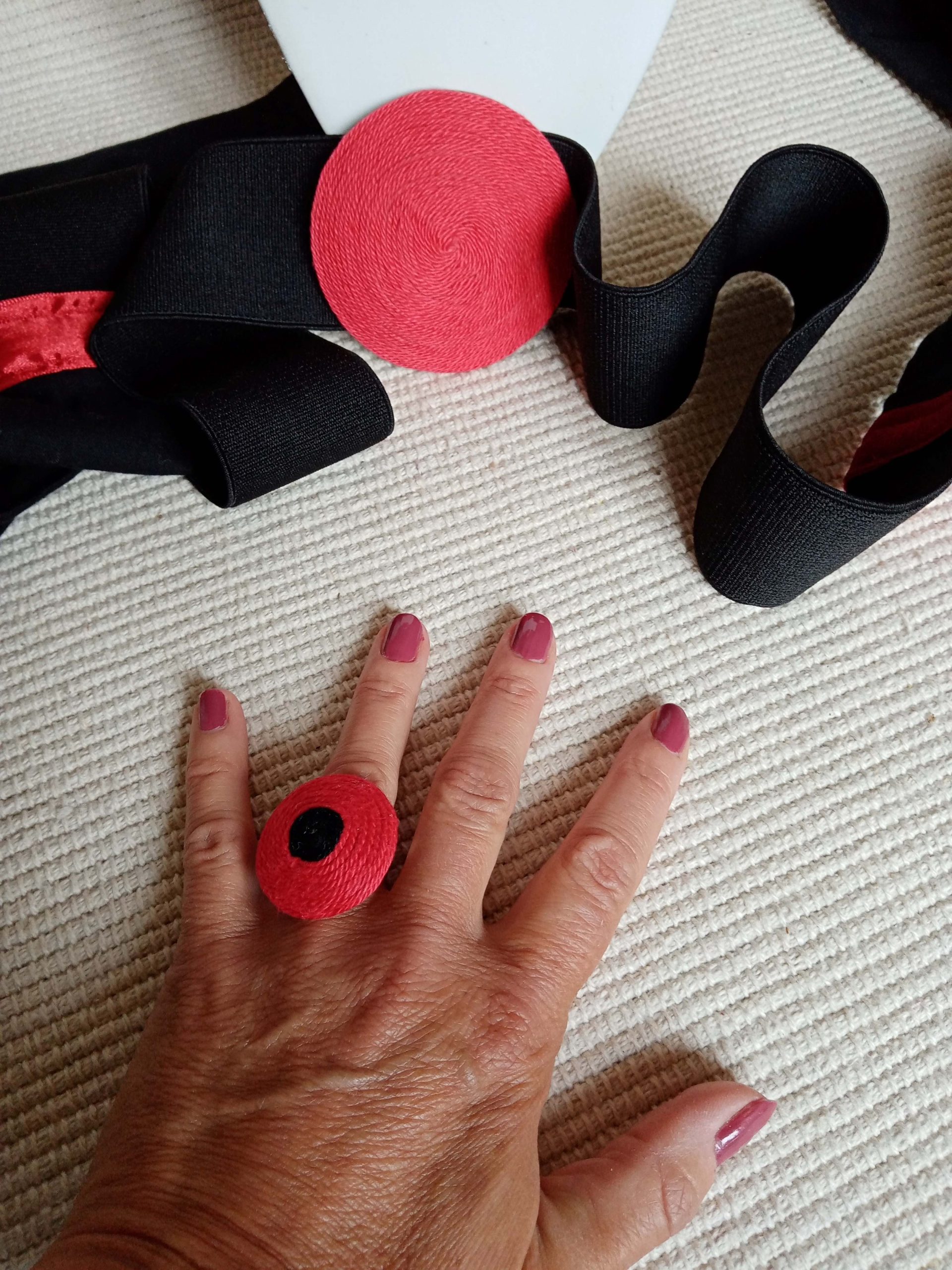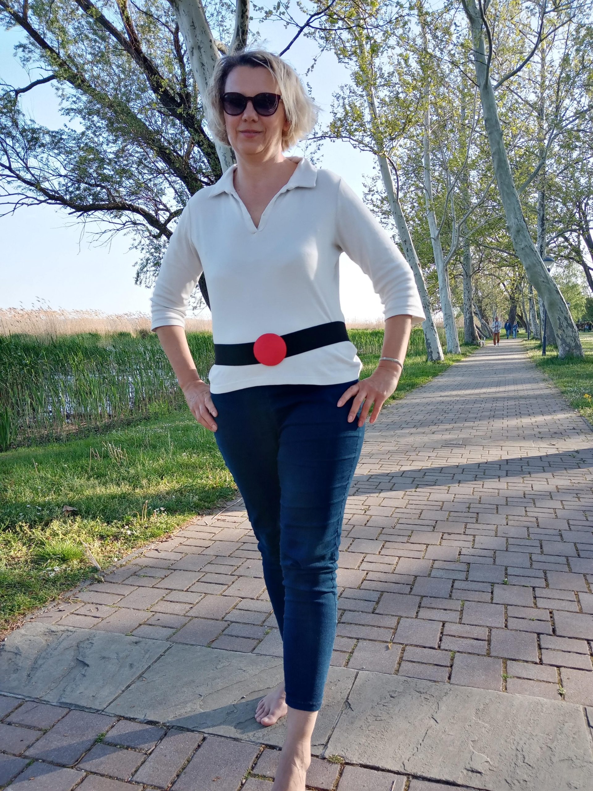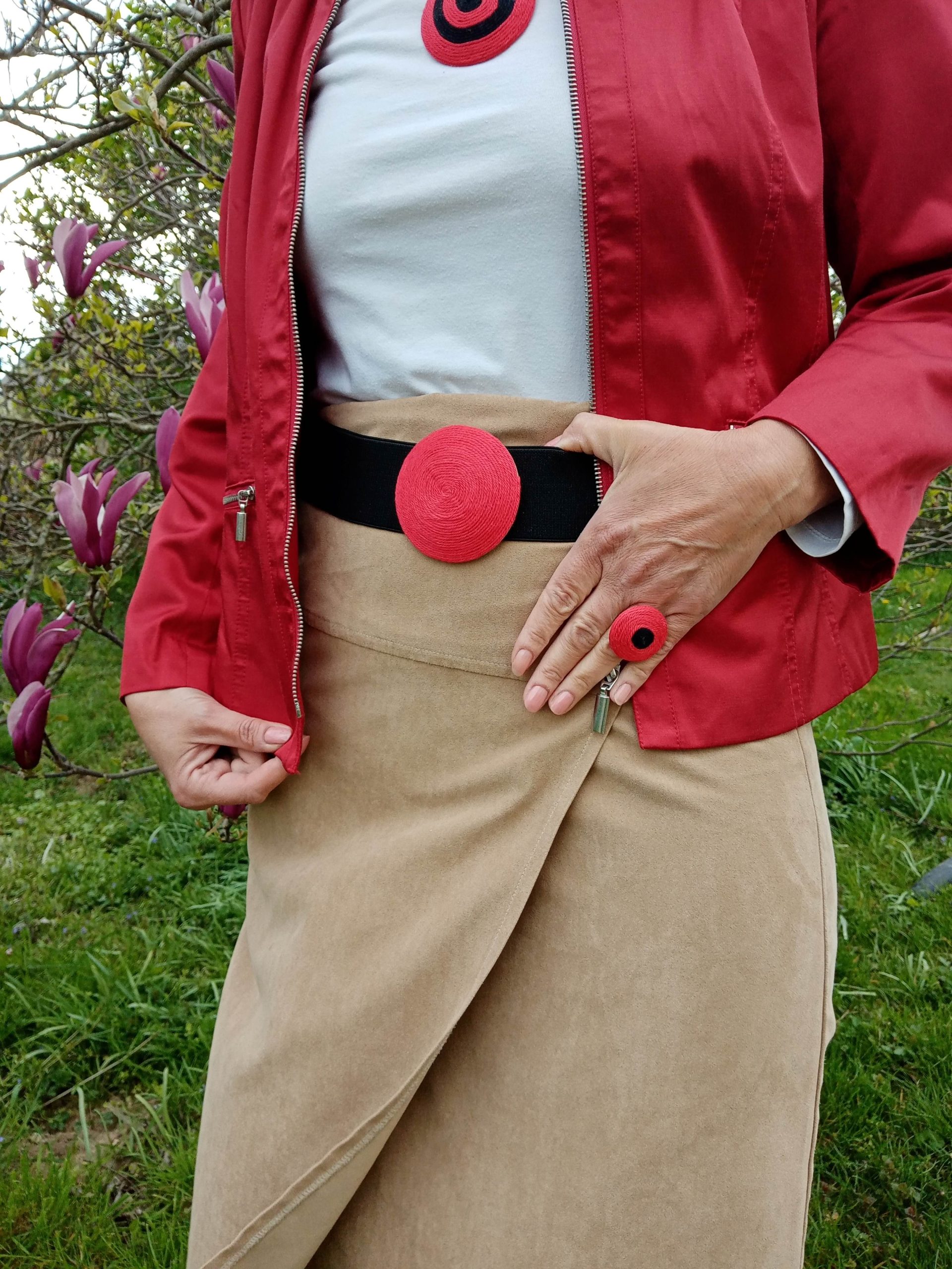 Középen 7.5 cm falencsére felhúzott hímzett rész található, melyet egy 5 cm minőségi gumiból és pamutvászonból összevarrt anyaggal bárhol megkötheted a derekadon.