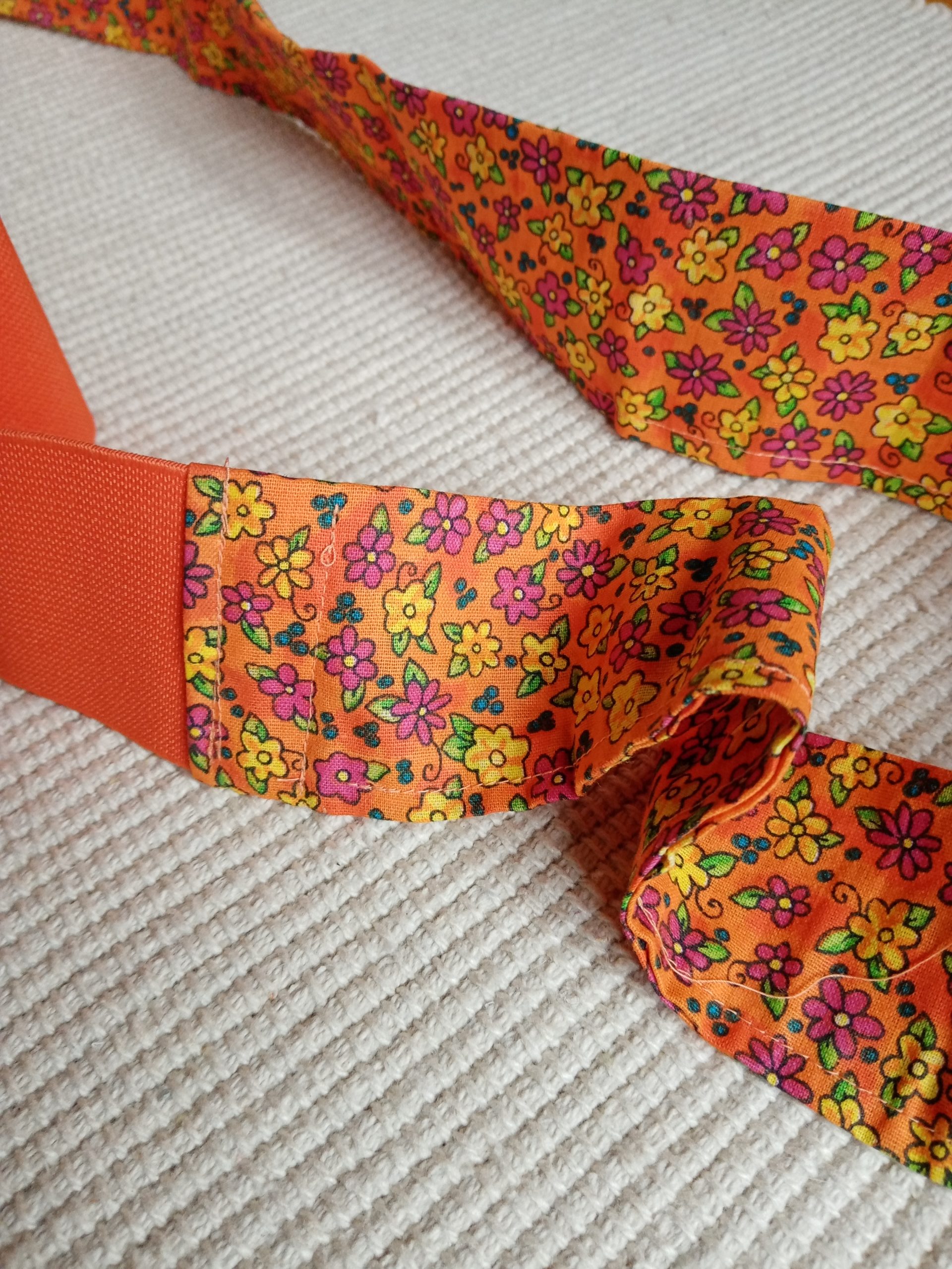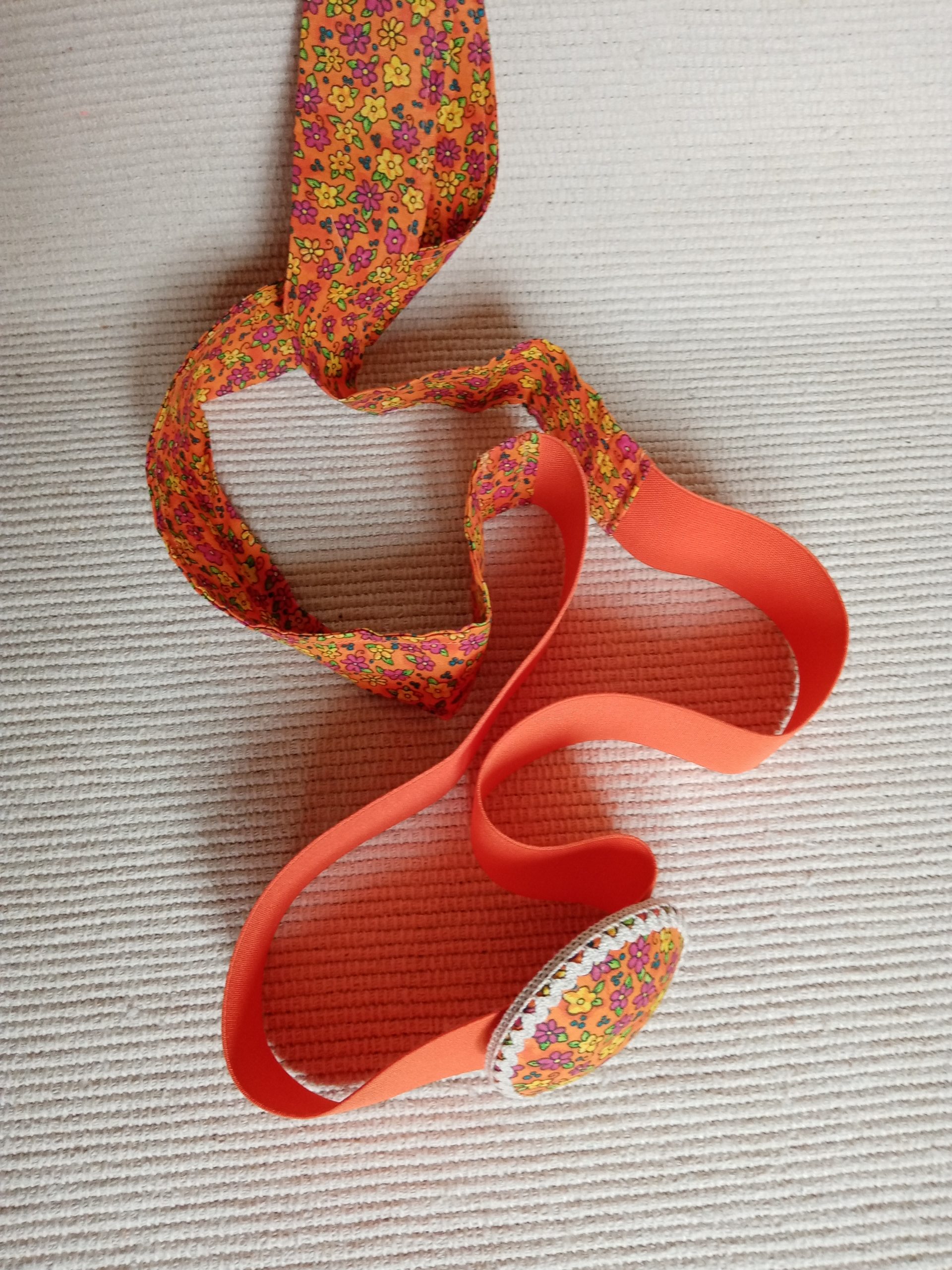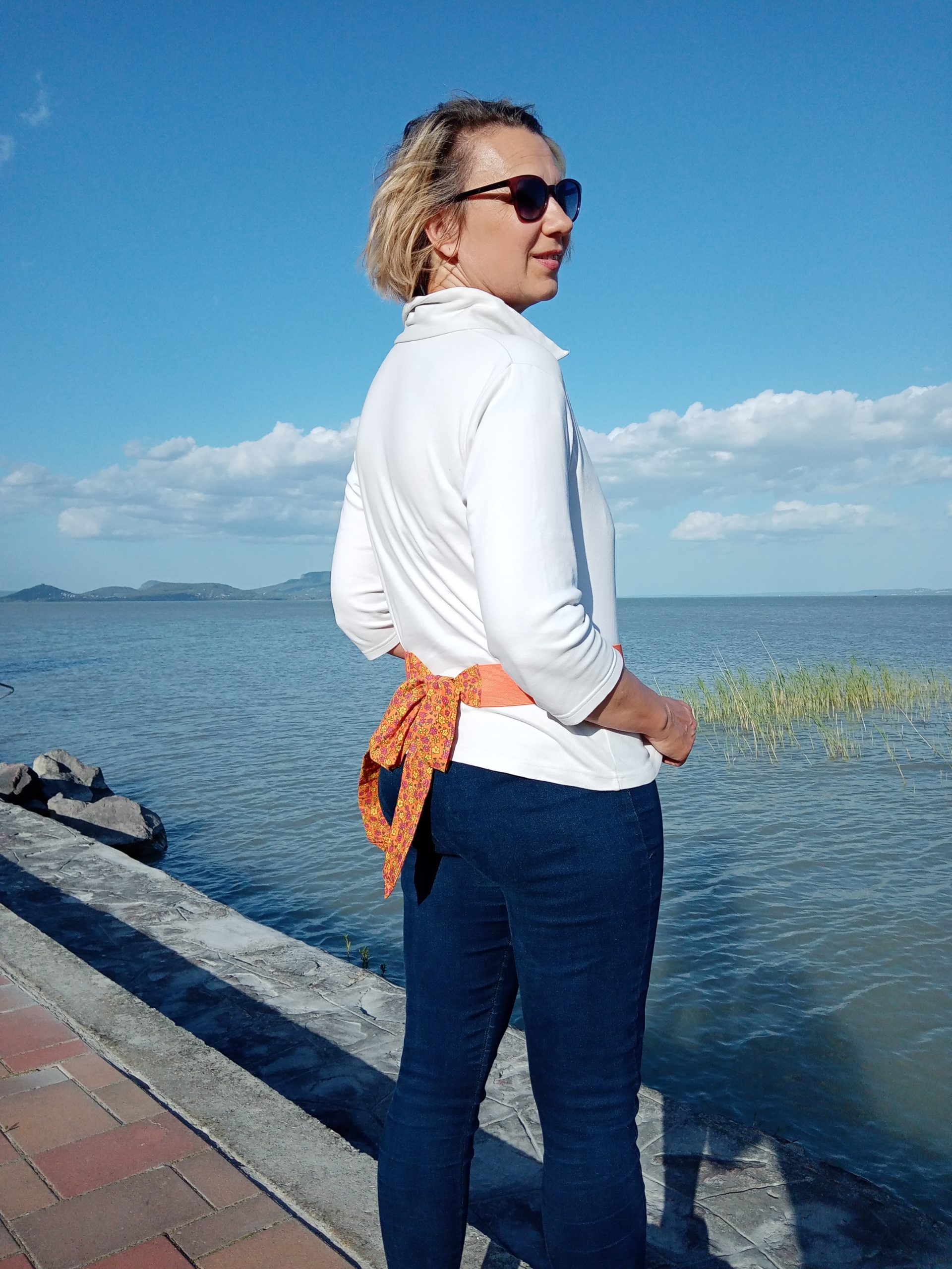 Középen 7.5 falencsére felhúzott hímzett rész található, melyet egy 5 cm minőségi gumiból és pamutvászonból összevarrt anyaggal bárhol megkötheted a derekadon.