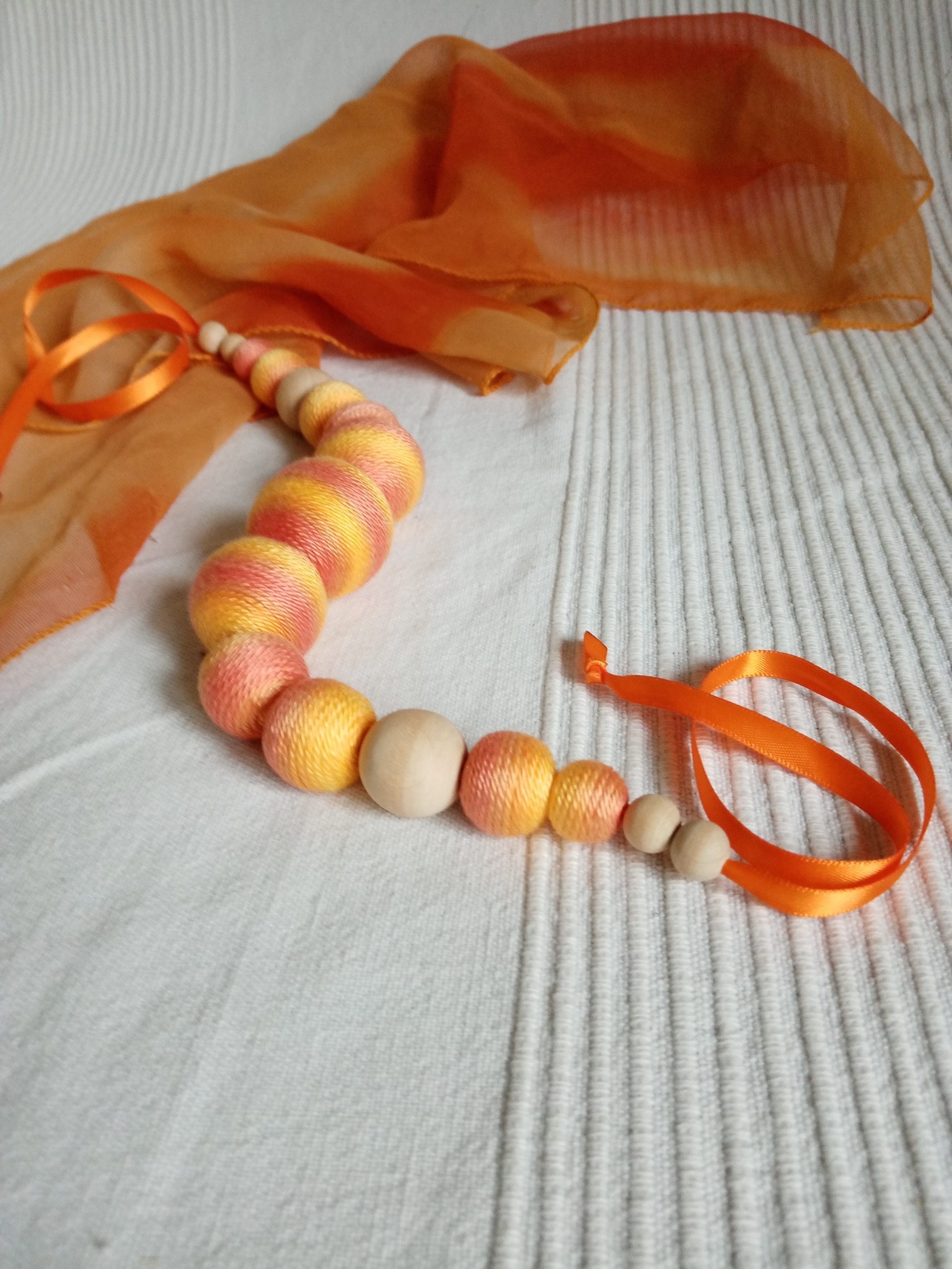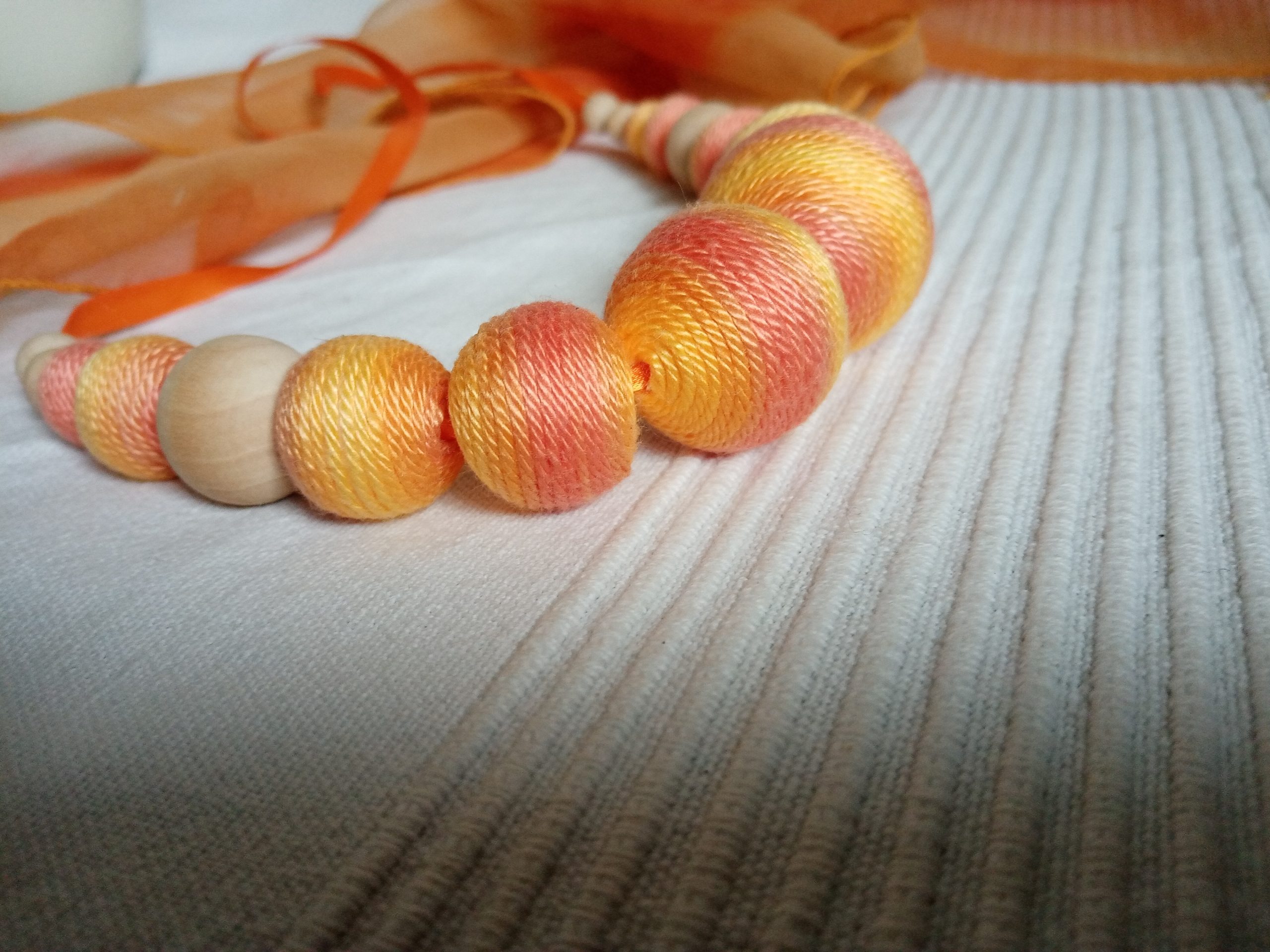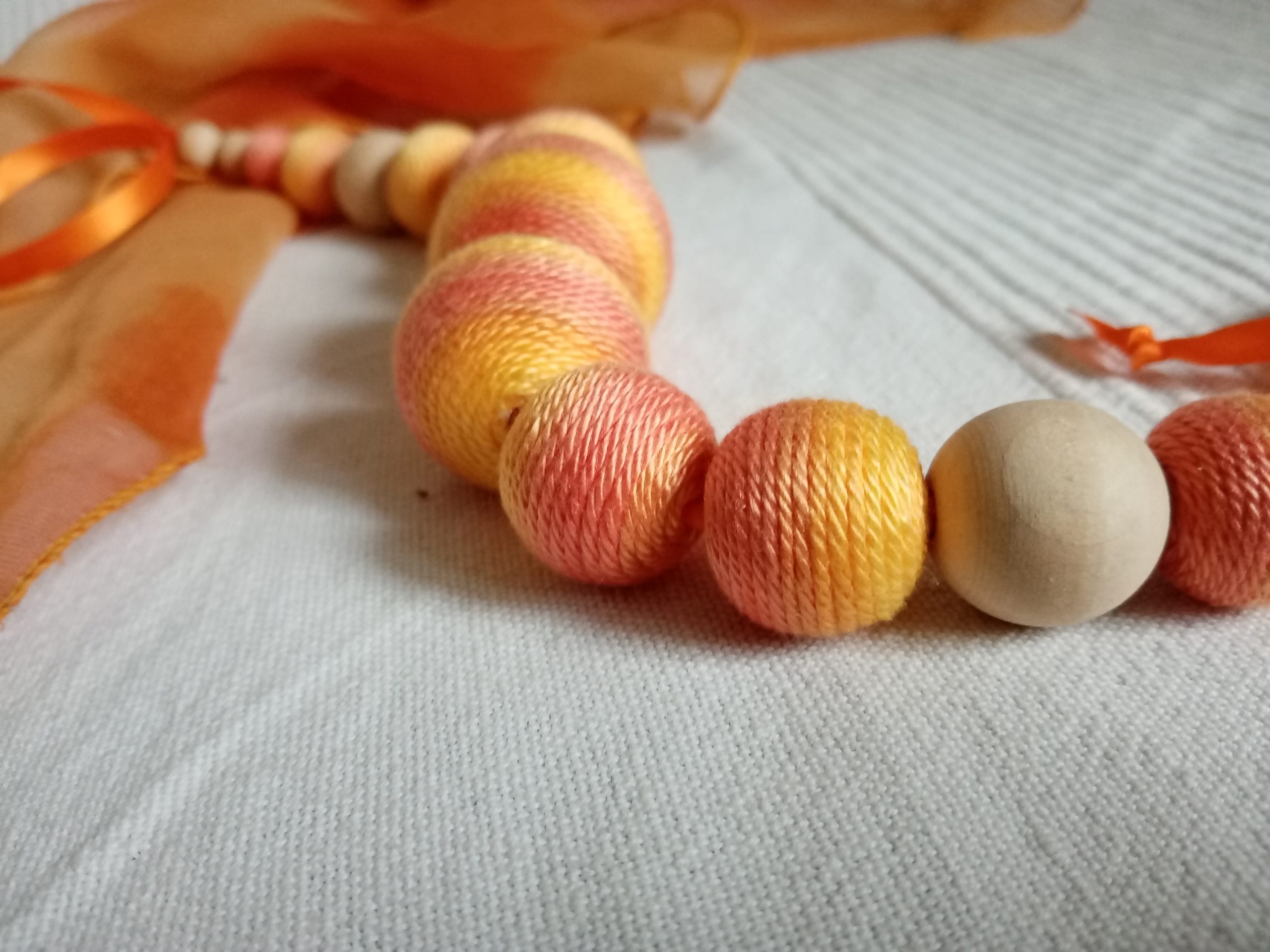 RAGYOGÓ NAP textilbogyó nyaklánc, fonal nyaklánc, golyó nyaklánc