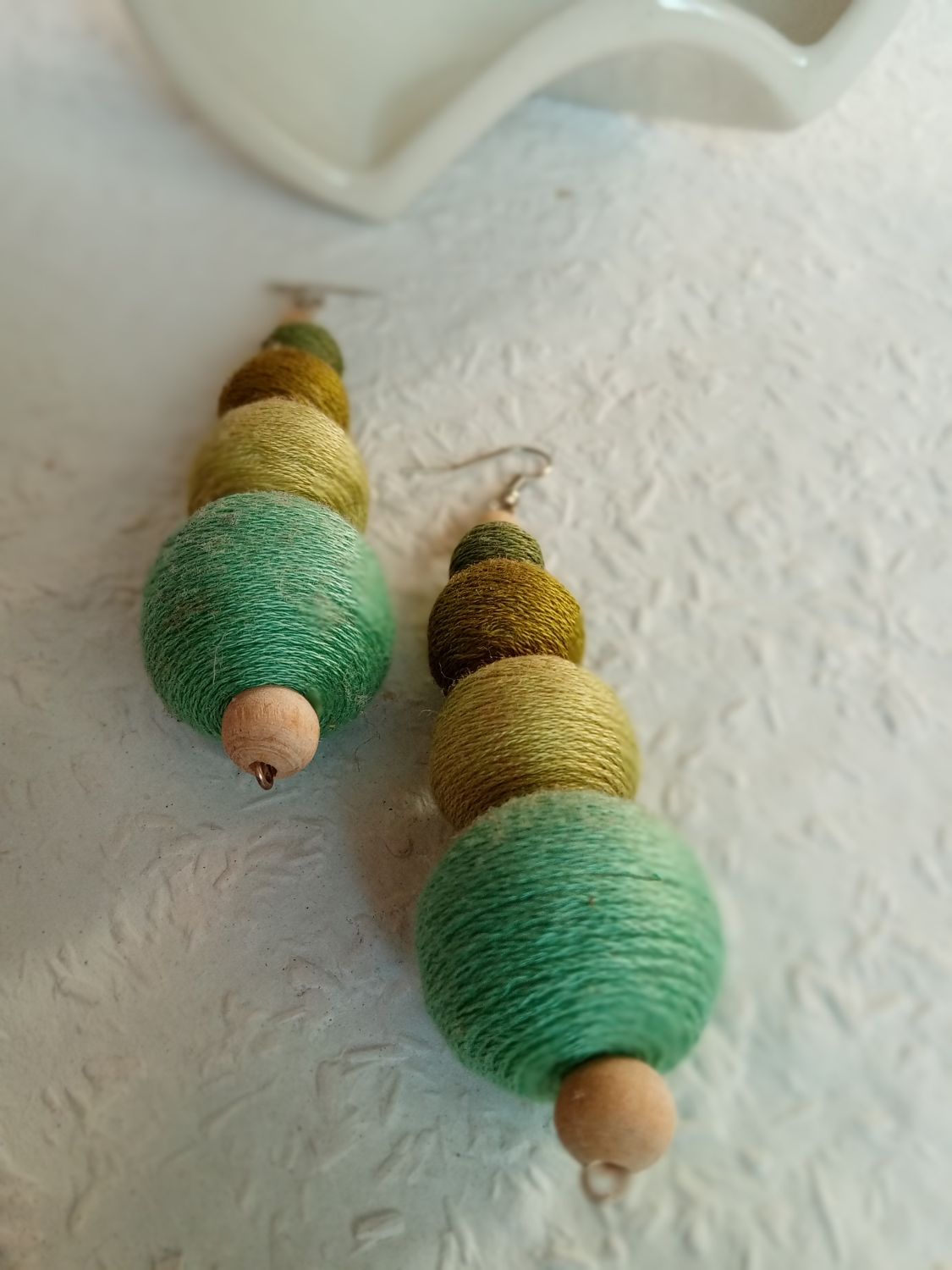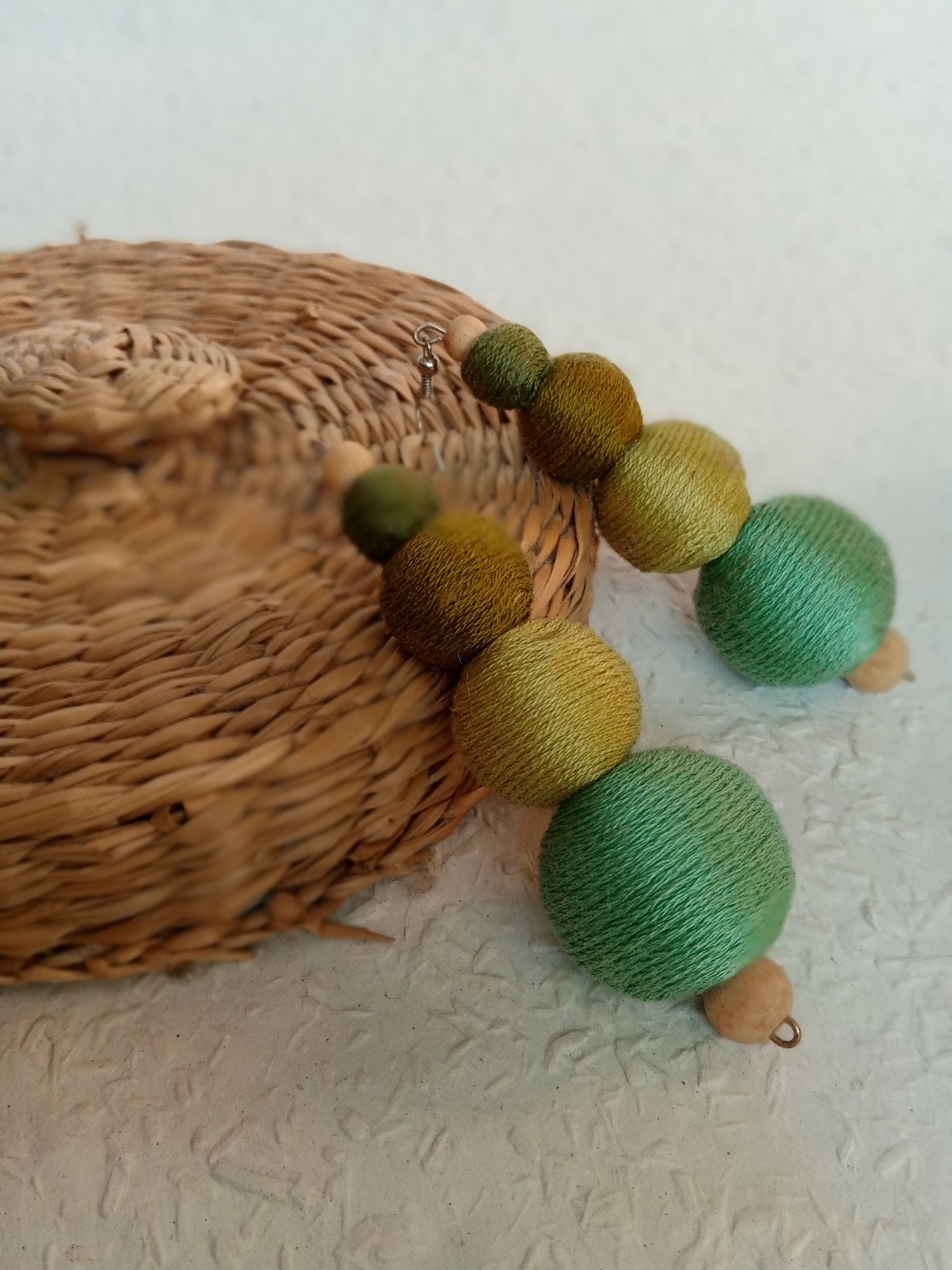 A zöld legkülönbözőbb színeit válogattam ebbe a hosszú fülbevalóba. Ezzel a fülbevalóval garantáltan nem tudsz elbújni a tömegben. Azoknak ajánlom, akik szeretik a merész dolgokat.