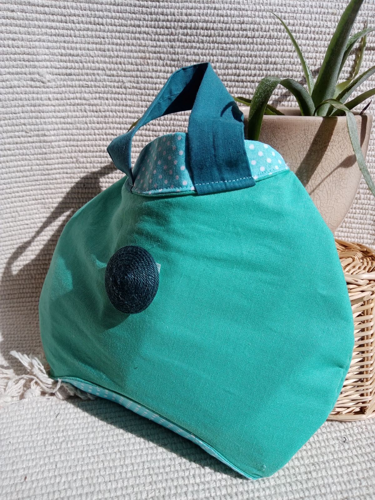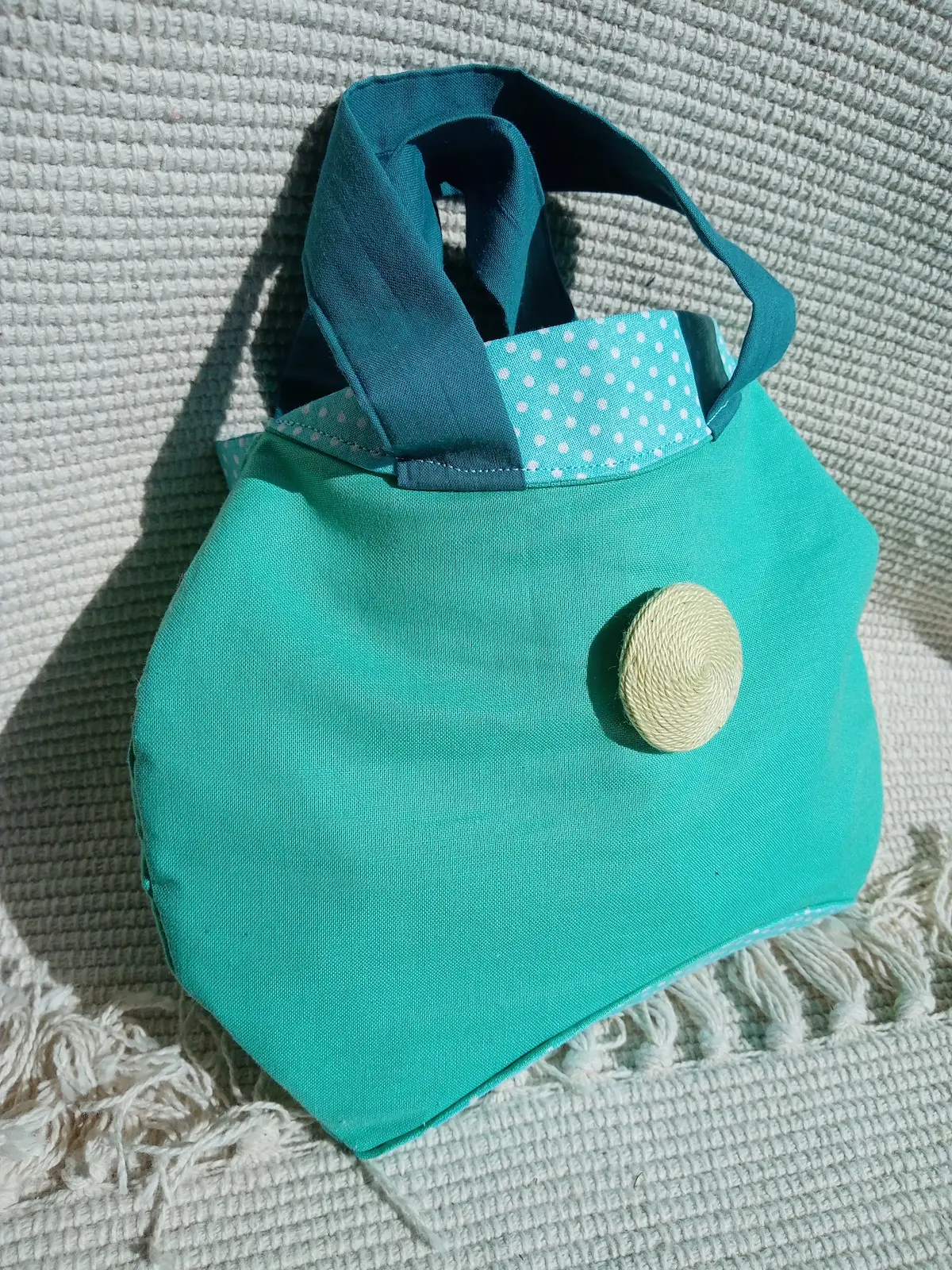 A táska első részén lévő kerek díszdarabot változtathatod, kettő kerekalakú + 1 db szívalakú díszelemre. (fadarabra készült díszek, melyek tépőzárral illeszkednek a táskához)