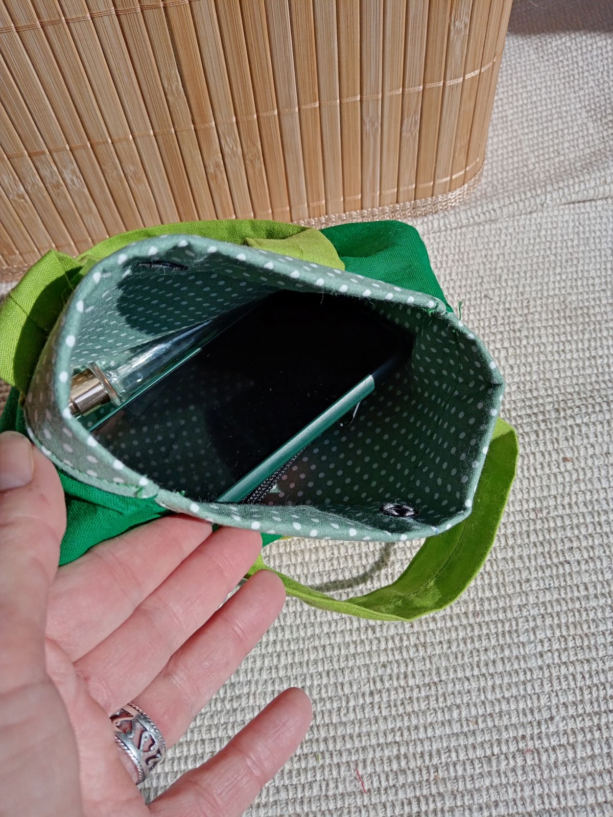 Mágneses kapoccsal zárható a táska. Ha első randira készülsz az ismeretlen nagy Ő-vel, elég annyit mondanod, hogy „pöttyös táska lesz nálam”.