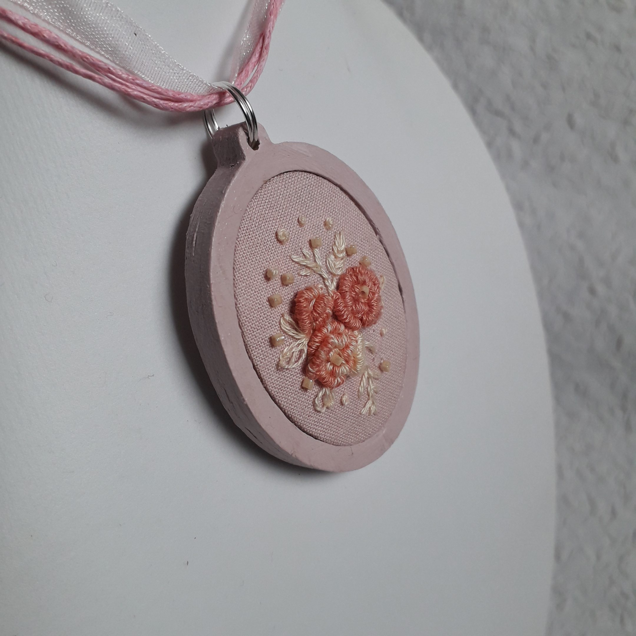 Rózsaszín organza szalaggal ellátva. Ha szereted a természetet, a lágy formákat és a precíz kidolgozású ékszereket, akkor ez a darab Neked szól!