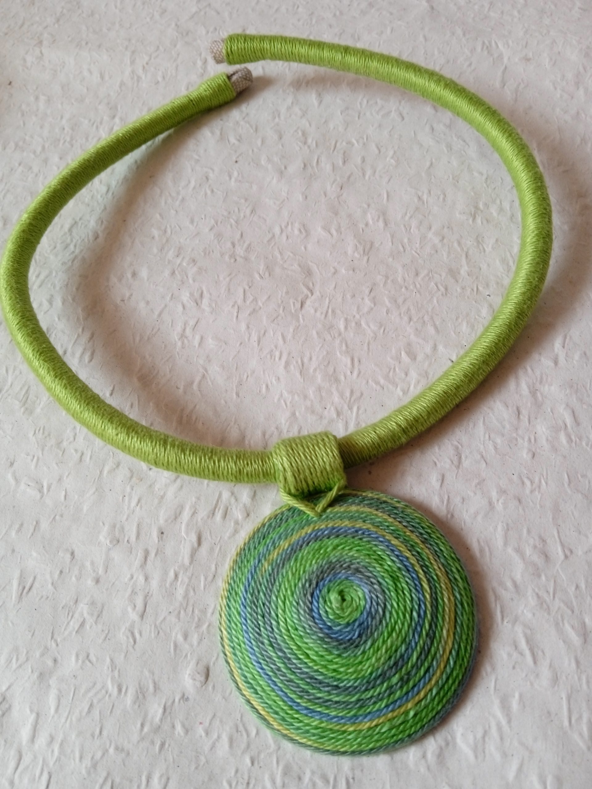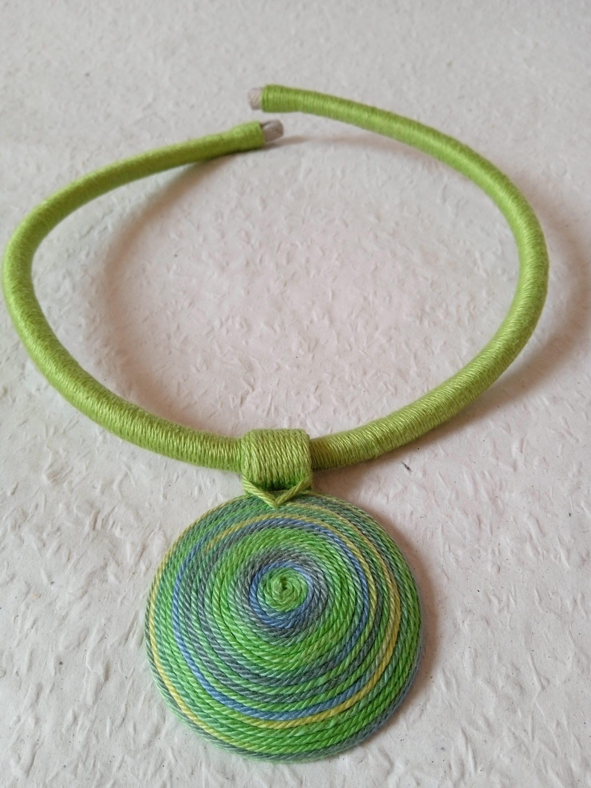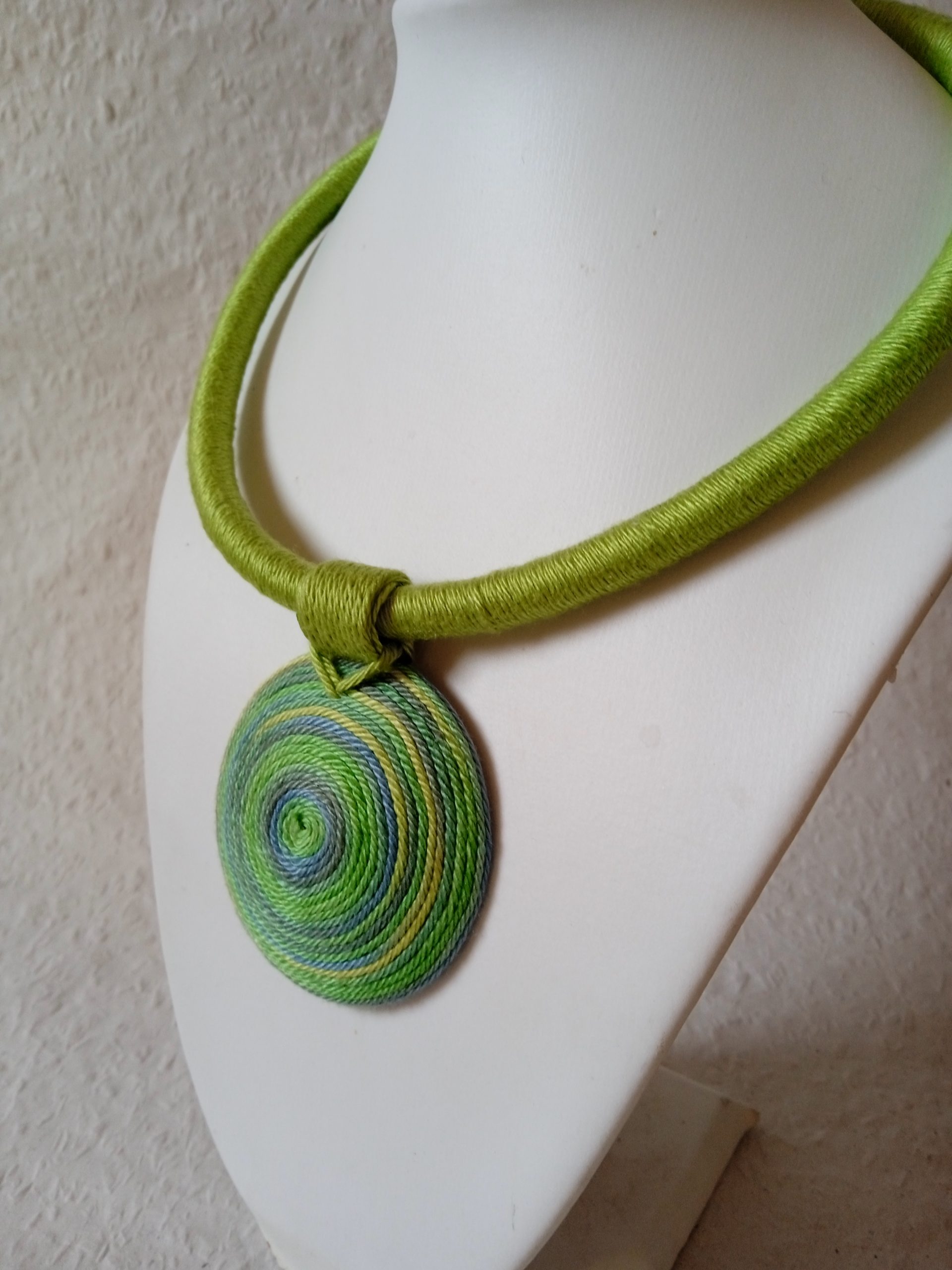 A tavasz színek árnyalataiban készült ez az egyedi fonal nyaklánc. Minőségi, természetközeli és trendi mind a hétköznapokra mind ünnepnapokra. A medál újrahasznosított falencsére és régről kimaradt fonalakból készült. Állítható A medál 5.5 cm